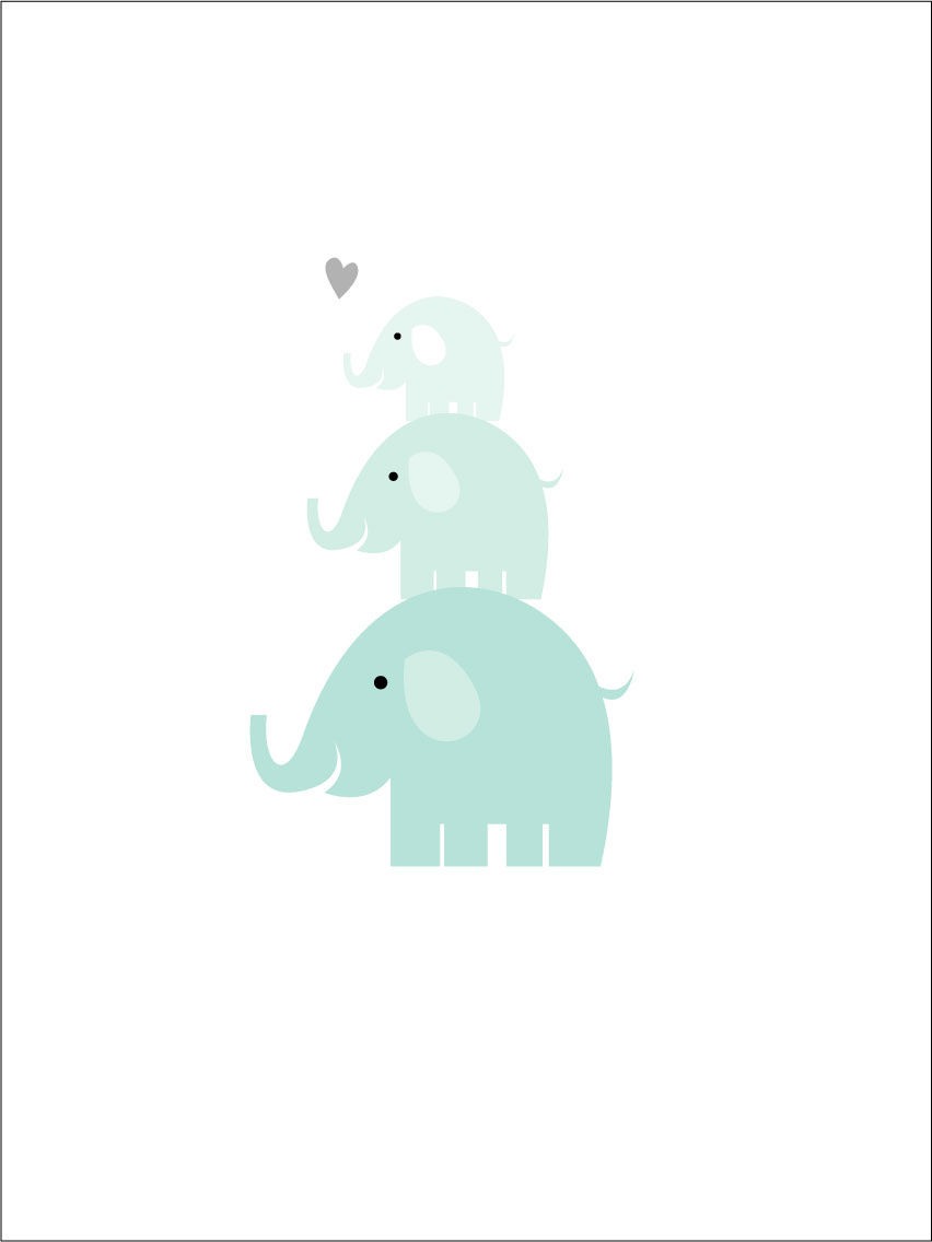 Plakát s tištěným motivem se třemi roztomilými slony v odstínu ledové modři, naskládanými na sobě na bílém papíře. Něco pro ty, kteří mají rádi všechna zvířata savany, ale hodí se možná především do pokojů malých dětí. Plakát lze kombinovat s dalšími plakáty se zvířaty nebo slony ve stejném barevném provedení, aby se vytvořil krásný pohádkový pocit v dětském pokoji.