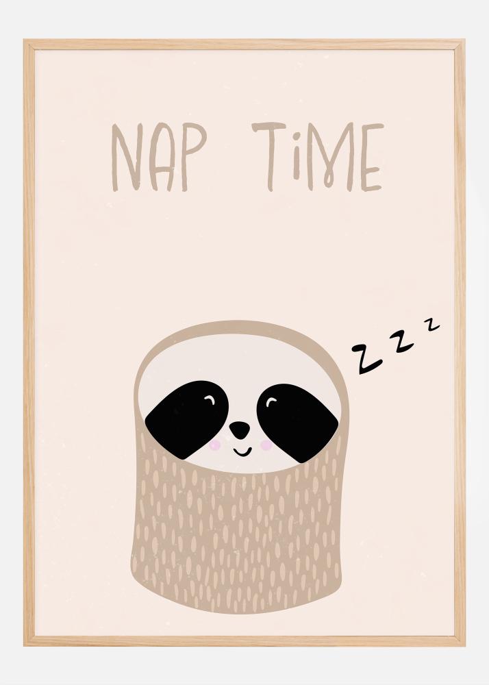 Tento roztomilý plakát, zdobený slovy "NAP TIME" a zobrazením spícího lenochoda, je dokonalou nástěnnou dekorací pro vytvoření klidné a uvolněné atmosféry. Ilustrace je provedena v měkkých, tlumených barvách, s pastelově růžovým pozadím a srstí lenochoda v přírodních odstínech béžové a hnědé. Velké, přívětivé oči a klidný úsměv na tváři lenochoda jsou neodolatelné a přinášejí pocit tepla a klidu.