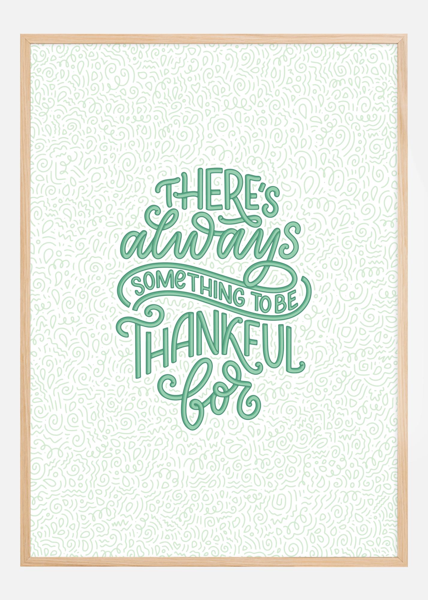 Tento inspirativní plakát je výzvou k optimismu a vděčnosti, ideální pro šíření pozitivních vibrací ve vašem domově nebo na pracovišti. S živým zeleným textem, který zní "There's always something to be thankful for" na detailním bílém pozadí plném složitých linií a vzorů, vyzývá k pozitivnímu pohledu na život a k reflexi.