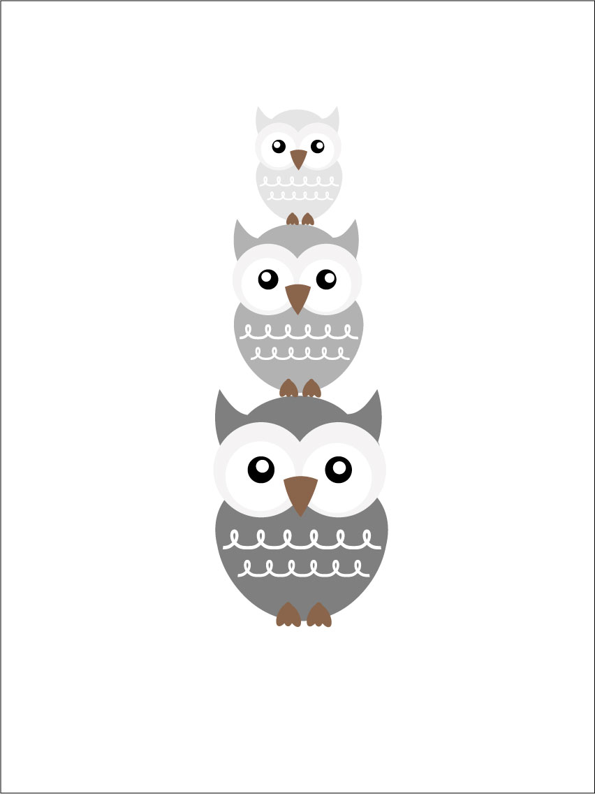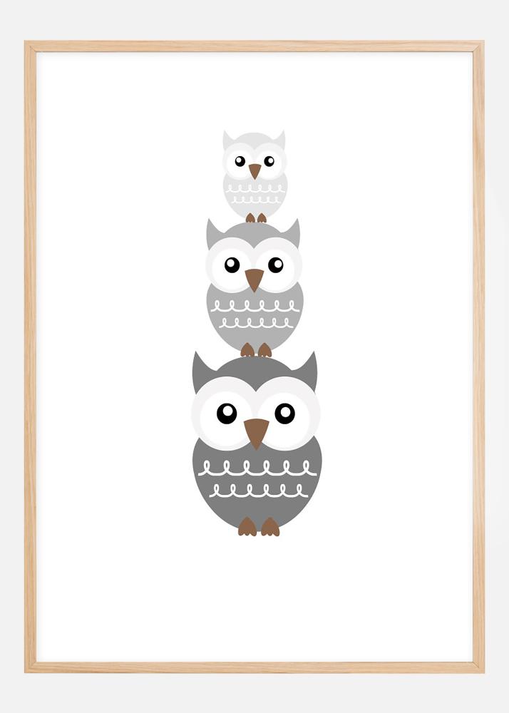 Tři jsou lepší než jeden. Umění s populárním ptákem číslo jedna, sovou. Ilustrace tří stylizovaných mlhovinově šedých sov naskládaných na sebe na bílém pozadí se stala moderní klasikou. Motiv se hodí stejně dobře do obývacího pokoje jako do dětského pokoje a zvlášť vyniká v interiéru, který zachycuje barvu v obrazu. Kombinujte s jinými ptáky nebo zvířaty pro divoký pocit.