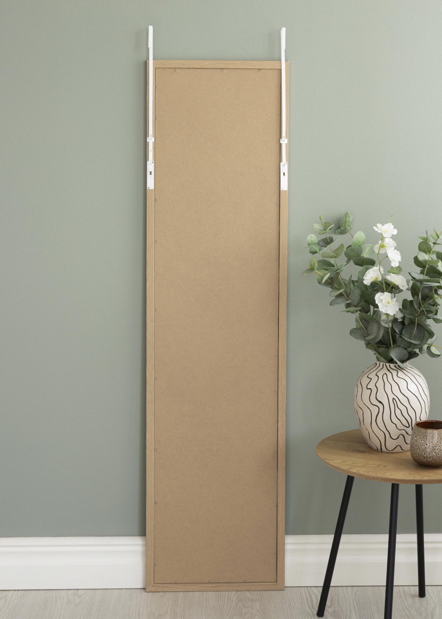 Toto dveřní Zrcadlo má štíhlý a moderní dřevěný rám v odstínu Dub, který dodává teplý a přírodní vzhled. Matný povrch způsobuje, že Zrcadlo působí nenápadně, zároveň však přináší do místnosti strukturu a charakter.