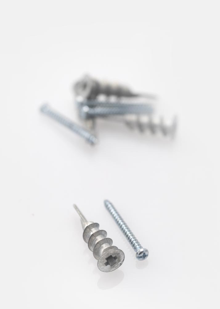 Samořezné sádrokartonové kotvy v balení po 4 ks. Stačí našroubovat hmoždinku a poté šroub, a máte hotovo. Není třeba vrtat. Perfektně se hodí pro všechny naše obrazy, které mají být instalovány na sádrokartonové stěny.