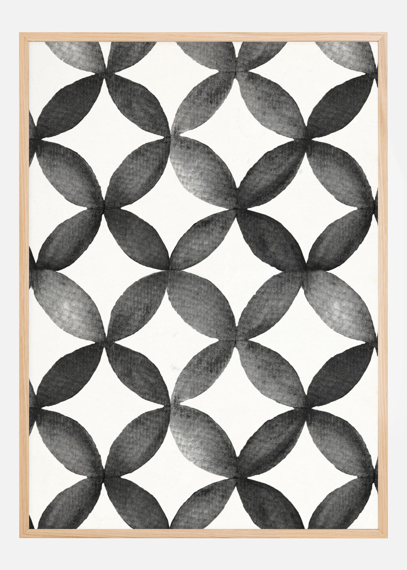Tento plakát je poctou estetické síle geometrických vzorů. Hlavní motiv tvoří série propojených listnatých rostlin v elegantních černých a bílých odstínech. Vytvářejí stále plynoucí vzor, který je jak fascinující, tak relaxační na pohled. Tento tisk spojuje tradiční inspiraci přírodou s moderním grafickým stylem, což z něj činí sofistikovaný doplněk do každého domova.