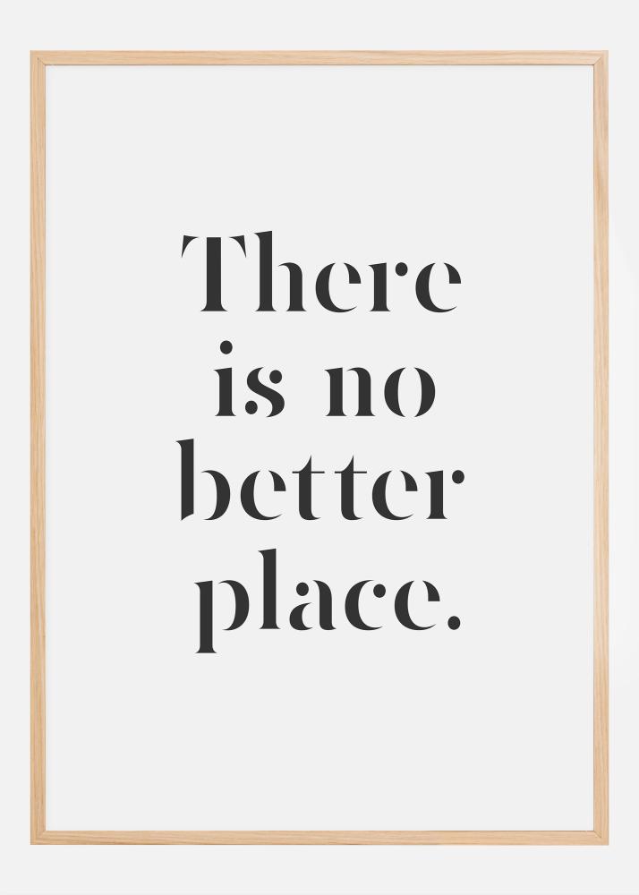 Objevte náš minimalistický a elegantní plakát, který přináší pocit klidu a útulnosti svým jednoduchým poselstvím "There is no better place". Tento moderní tisk je ideální pro ty, kteří oceňují skandinávský design a jasná, ale silná poselství ve svém bytovém vybavení. Motiv, který je omezen na klasický černý text na bílém pozadí, se stává nadčasovým dekoračním prvkem, který se hodí jak do moderního, tak do tradičnějšího domova.