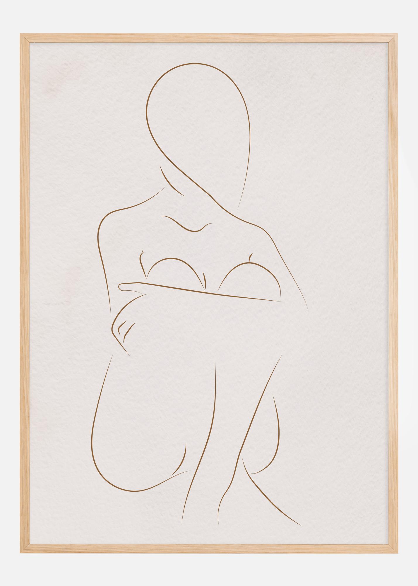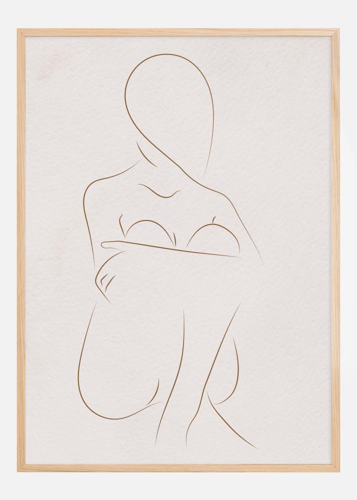 Tento elegantní a minimalistický plakát zobrazuje ženskou postavu vytvořenou pomocí tenkých linií, které fascinují svou jednoduchostí. Lineární umění používá nenápadnou a zjednodušenou estetiku k zachycení ženské formy, což nechává prostor pro divákovu vlastní interpretaci a fantazii. Jemné kontury a zjednodušený výraz poskytují moderní a stylový dojem, který se hodí do minimalistického nebo skandinávského designového směru.