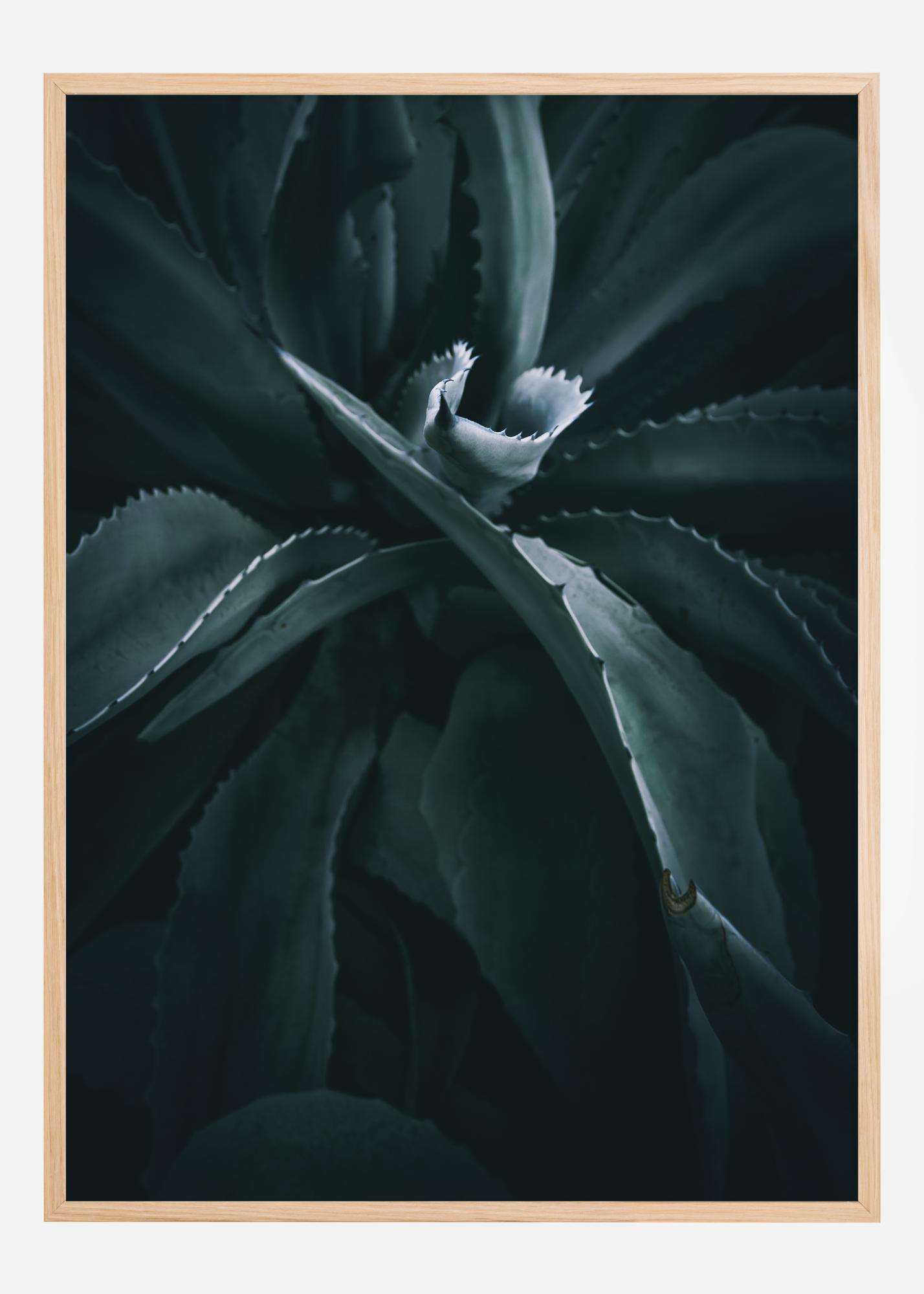 Imponujte tímto uměleckým plakátem, který zachycuje tajemnou krásu trnité aloe vera. Hluboký šedo-zelený barevný paleta vytváří téměř jednobarevný efekt, což dodává moderní a sofistikovaný pocit. Každý list je sochařský a detailní, s měkkými hranami přecházejícími do ostrých hrotů, což zachycuje podstatu rostliny dramatickým a téměř abstraktním způsobem.