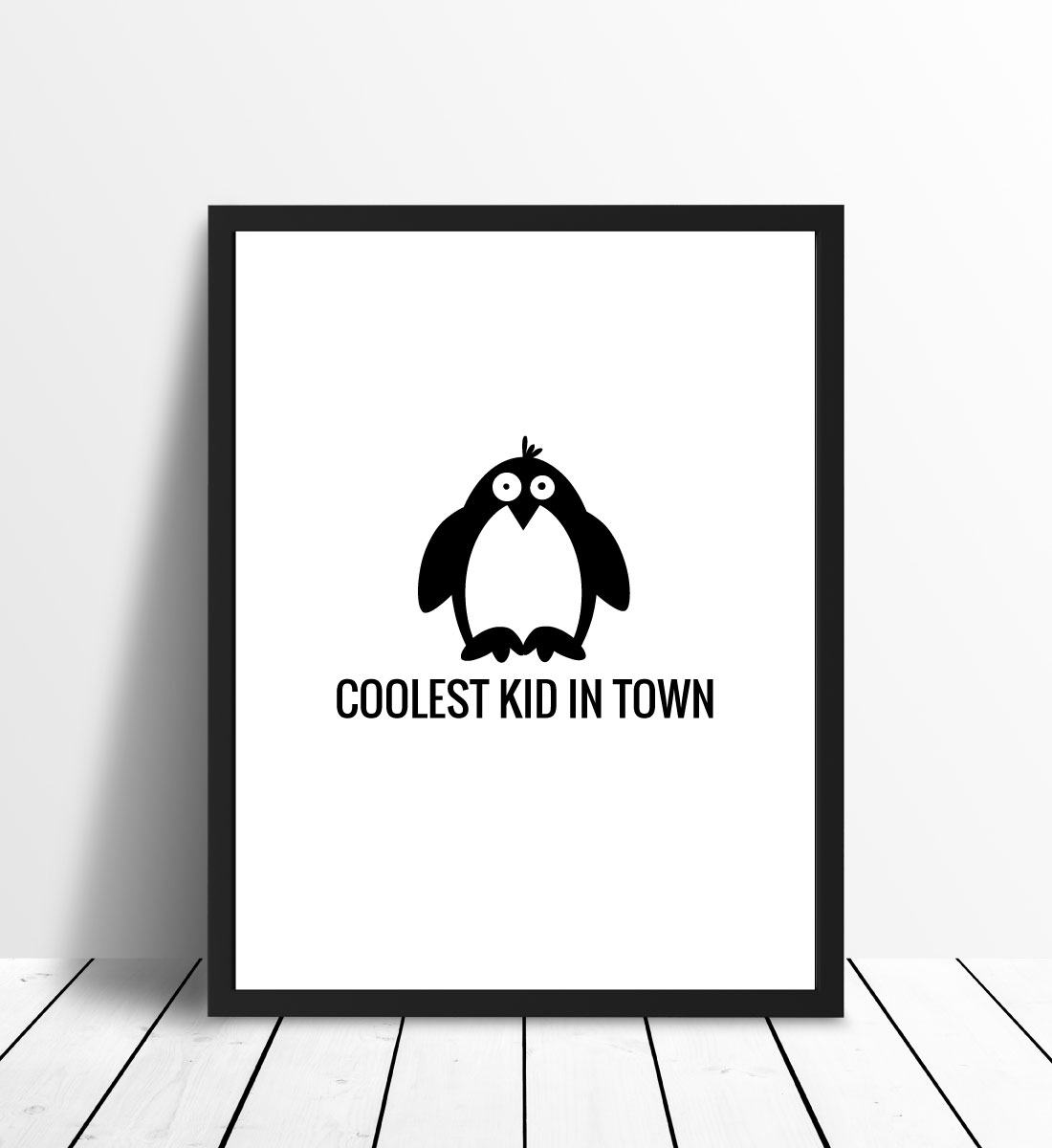 Plakát s nejchladnějším motivem ve městě. Tučňáci jsou cool a stejně tak děti, které mají tento plakát. Grafická černobílá ilustrace, s elegantním fontem, se hodí do každého dětského pokoje. Kombinujte plakát s některým z dalších tisků ve stejném stylu pro vytvoření série - Dino Favorite, Slon Dream, Pes Little, Superhrdina nebo Králík Happy.