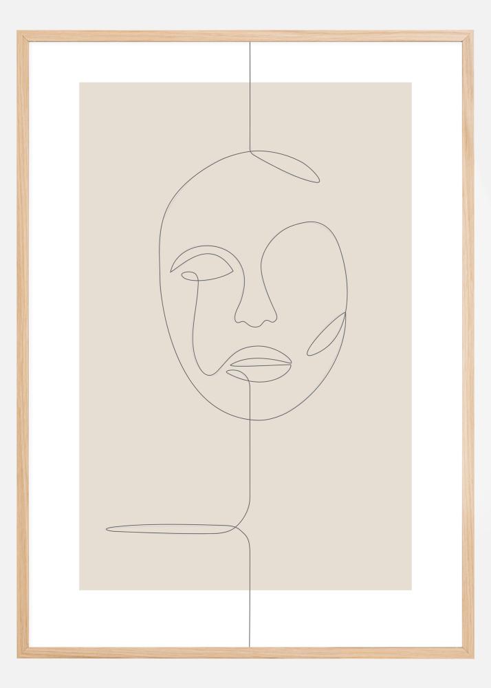 Plakát s tenkou liniovou kresbou abstraktní tváře. Zajímavé zde je, že k vytvoření tváře je použita jediná linie. Linie přichází shora jako provázek, vlní se a vytváří tvář, než padá dolů na spodní část obrazu. Tato zvláštně přesvědčivá plakát by měla být zkombinována s odvážnou stěnou pro větší efekt.
