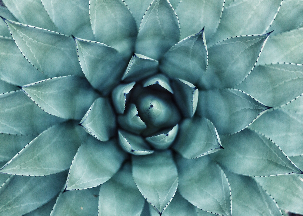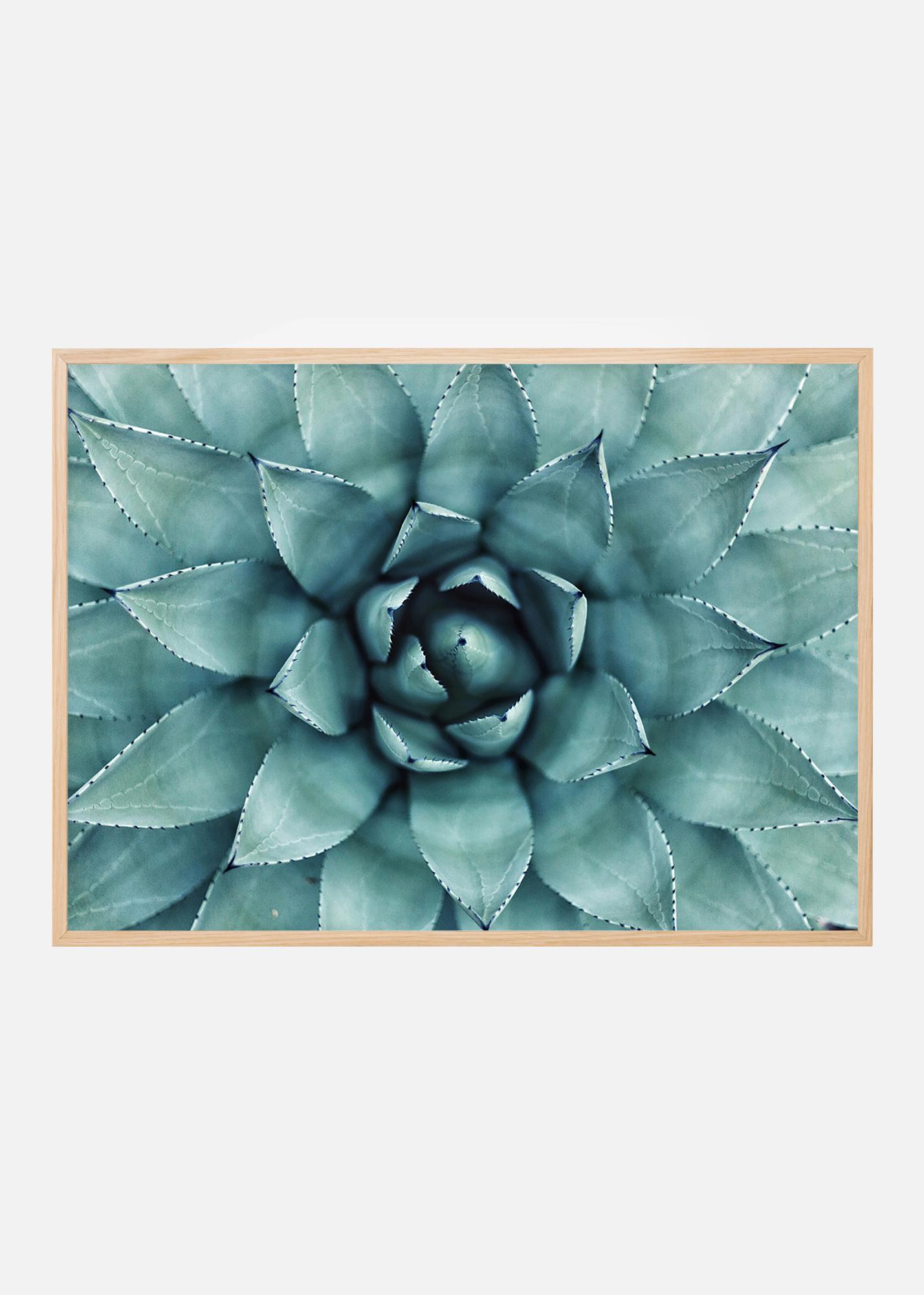 Grafický plakát s krásným detailním záběrem na zelenomodrý kaktus. Jasná forma listů s tmavými trny a tlumená tyrkysová barva vytvářejí atraktivní vzor, který se hodí do všech typů interiérů. S tmavým rámem obrazu vypadá fotografie dobře na stěně samostatně, ale lze ji také použít jako součást obrazového koláže s rostlinami.
