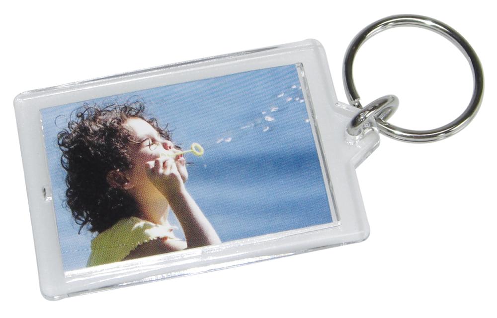Mějte s sebou své oblíbené fotografie všude! Stylový přívěšek na klíče z akrylátu s místem pro 2 obrázky (přední a zadní strana) ve velikosti 3,5x4,5 cm.