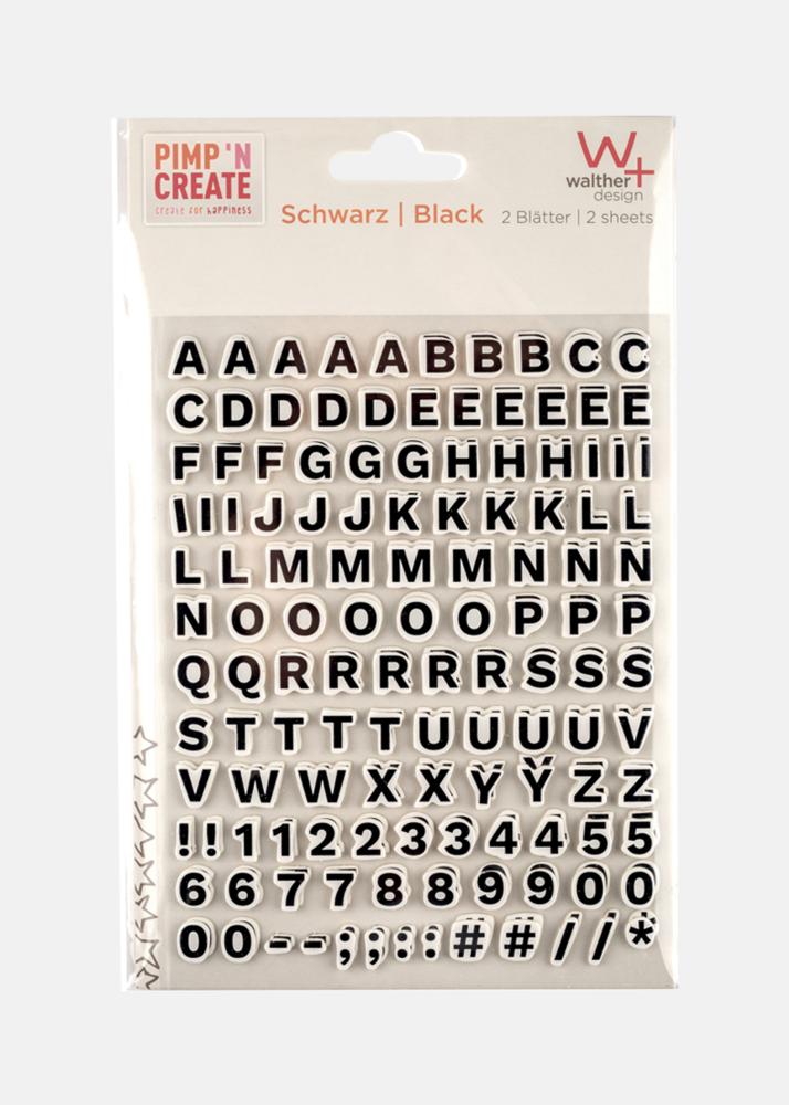 Písmena jsou 1 cm velká a mají elegantní design v černé barvě. Balení obsahuje 2 listy se 126 písmeny, čísly a speciálními znaky.