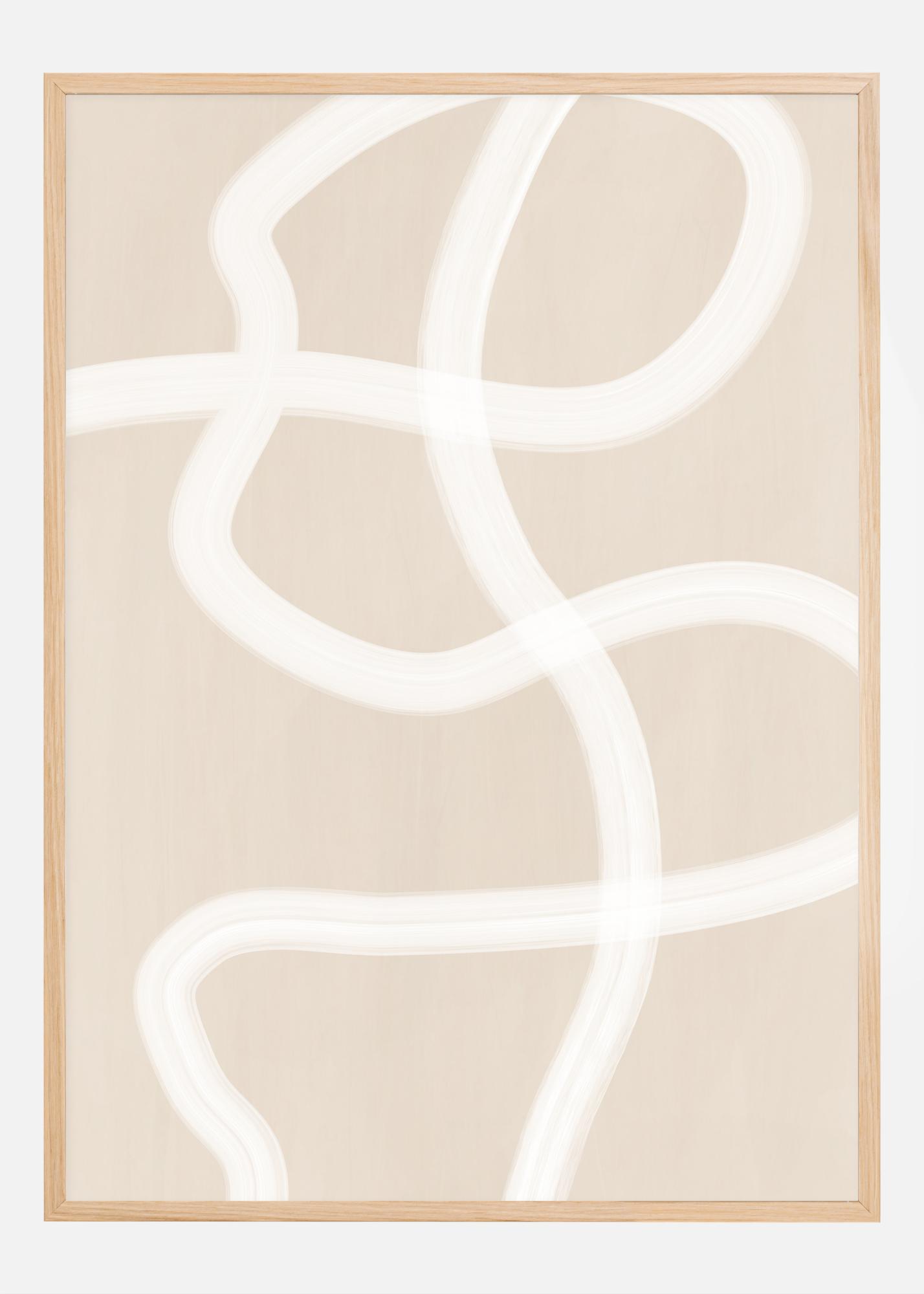Tento plakát s širokými bílými tahy štětcem na teplém béžovém pozadí nabízí fascinující a současnou estetiku. Jeho plynulé linie a organické tvary dodávají pocit pohybu a spontánnosti, přičemž si zachovávají čistý a prostý dojem, který je typický pro moderní minimalistický design.