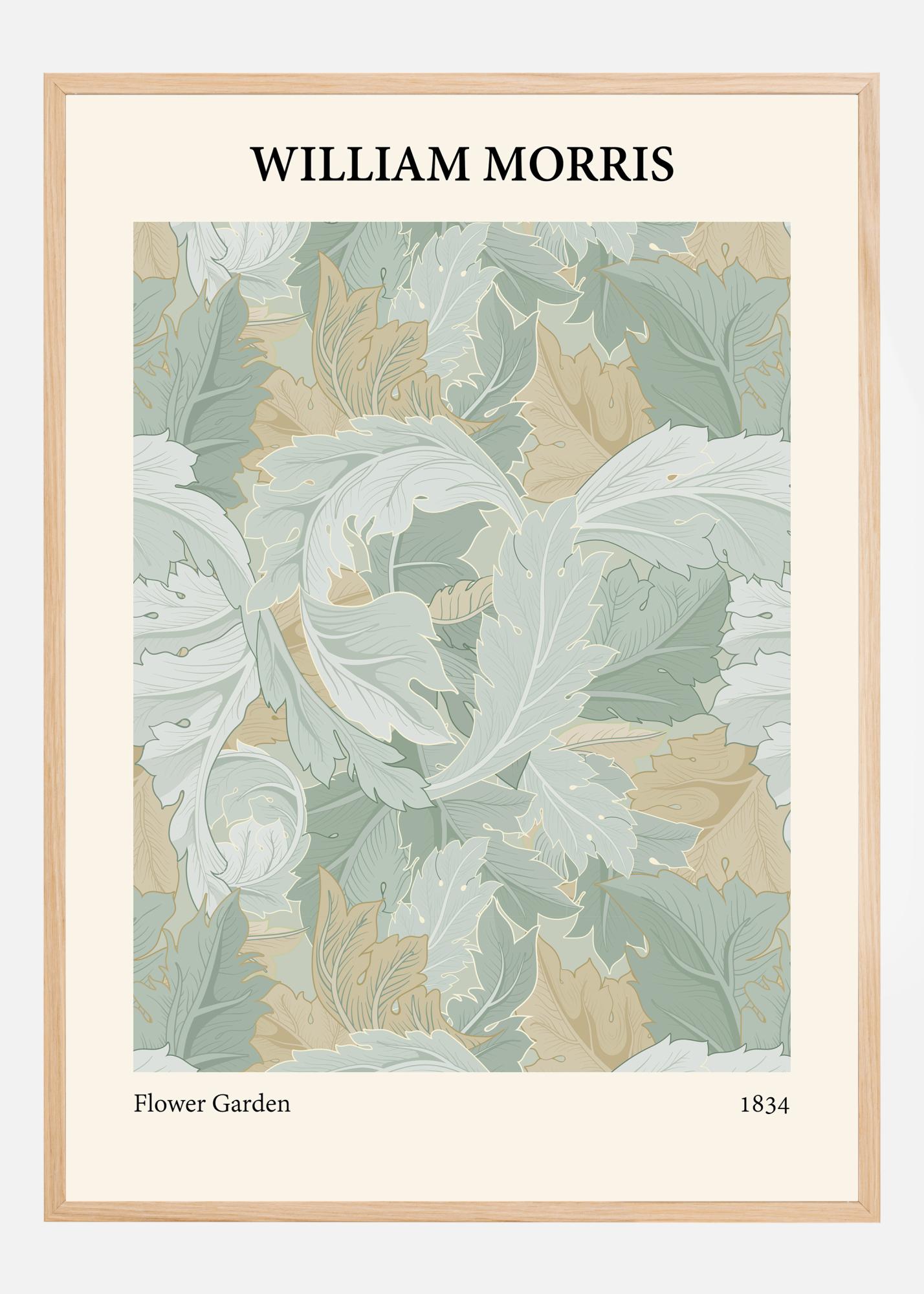 Tento elegantní a okouzlující plakát je poctou Williamu Morrisovi a jeho nezapomenutelnému přínosu pro design a umění. S motivem "Flower Garden" představuje tento tisk sofistikovanou kompozici listoví a květinových tvarů, které se proplétají v barevné paletě uklidňujících modrozelených a teplých béžových tónů. Každý prvek je navržen s Morrisovou charakteristickou důkladností detailů, což vytváří pocit hloubky a složitosti, který lze ocenit při každém pohledu.