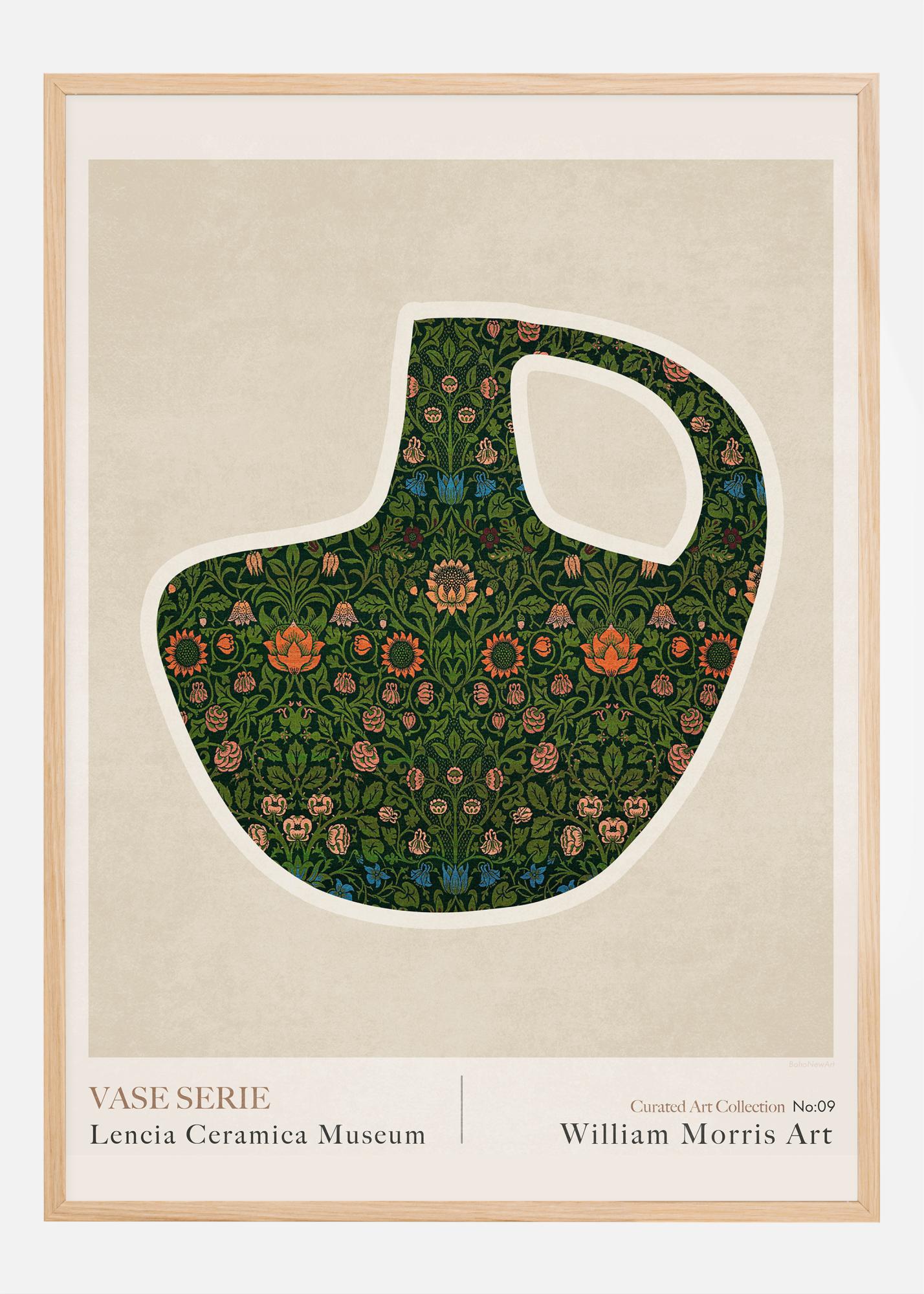 Tento krásný plakát je další součástí naší "Kurátorované sbírky umění", inspirované umělcem a designérem Williamem Morrisem. Představuje vázu tvarovanou podle Morrisových výrazných, svěžích vzorů, plnou složité a živé květinové kompozice. Tento design, který ukazuje Morrisovu lásku k přírodě a jeho odborné znalosti ve vzorovém umění, je nadčasová klasika, která si zaslouží místo v každém domě, který má vášeň pro historické řemeslo a umění inspirované přírodou.