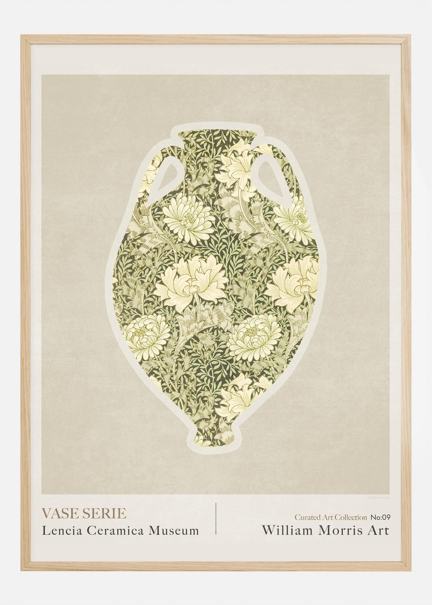 Tento elegantní a detailní plakát je součástí naší "Curated Art Collection" a je inspirován Williamem Morrisem, ikonou v oblasti vytváření vzorů a vedoucí osobností hnutí Arts and Crafts. Plakát zobrazuje stylizovanou vázu, bohatě zdobenou jedním z Morrisových klasických botanických vzorů. Nadčasová ilustrace odráží ocenění řemeslné práce, detailnosti a estetiky přírodního světa.