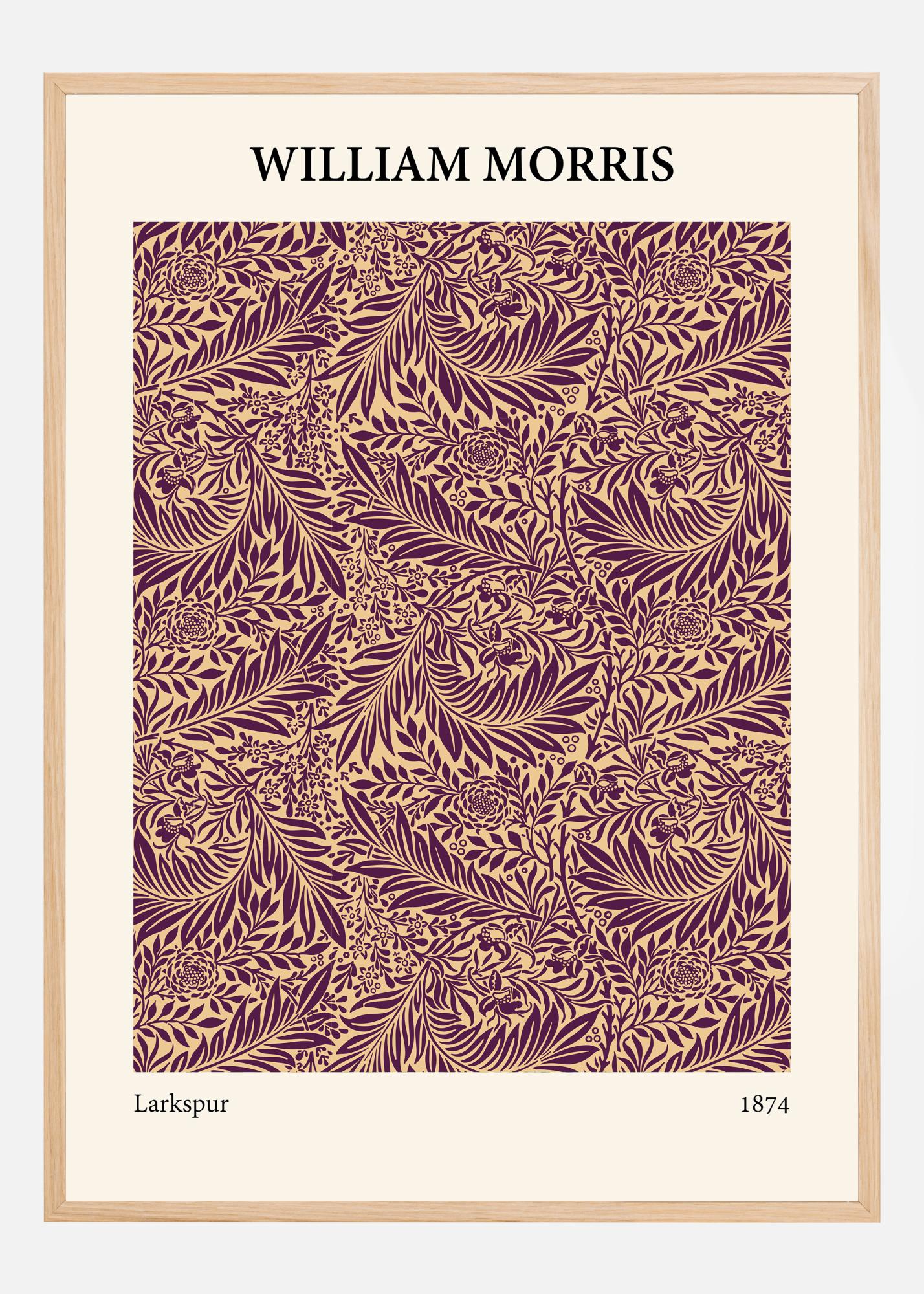 Tento odvážný a poutavý vzor od Williama Morrise je plakát, který oživuje klasický design "Larkspur" z roku 1874. S živou paletou vínové a béžové zachycuje tento tisk podstatu Morrisovy záliby v přírodě a vzorech. Jeho mistrovská práce s tvarem a barvou zvýrazňuje každý detail listoví a květin, což činí plakát významným dekorativním prvkem.