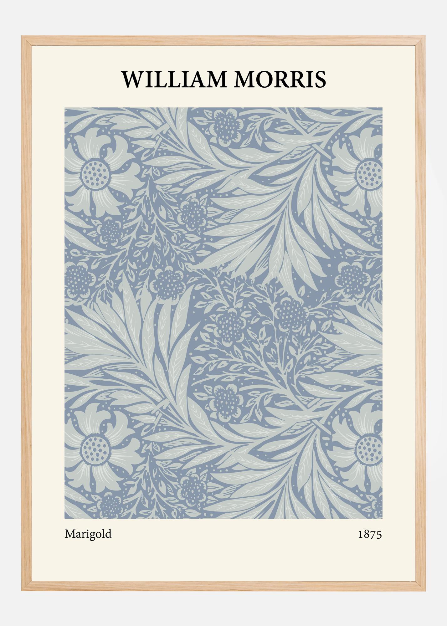 Tento krásně navržený plakát Williama Morrise zobrazuje vzor "Měsíček" z roku 1875 v poutavé modré barevné paletě. Detailnost vzoru a přírodní styl jsou důkazem Morrisovy schopnosti vytvářet umělecká díla, která oslavují a odrážejí krásu přírody. Tento design představuje mistrovství viktoriánské éry a uznání hnutí Arts and Crafts pro ručně vyráběné předměty.
