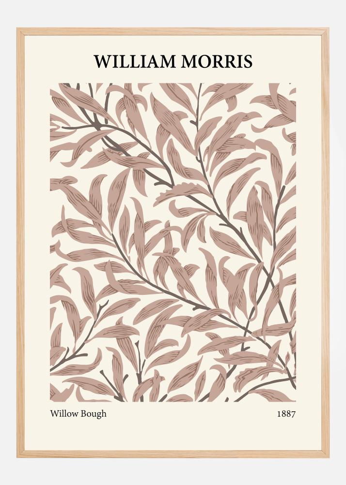 Tento design plakátu vzdává hold Williamovi Morrisovi a jeho "Willow Bough" z roku 1887 a je nádhernou reprezentací Morrisova závazku k přírodním vzorům. Důmyslně tvarované vrbové listy se rozprostírají po krémovém pozadí a vytvářejí harmonický kontrast, který je jak uklidňující, tak esteticky přitažlivý. Hnědé a béžové odstíny vyvolávají hřejivý pocit, který je typický pro Morrisovu práci.