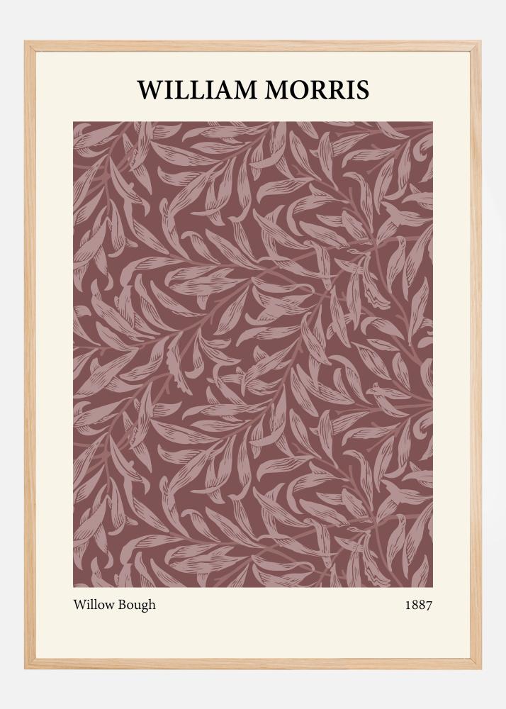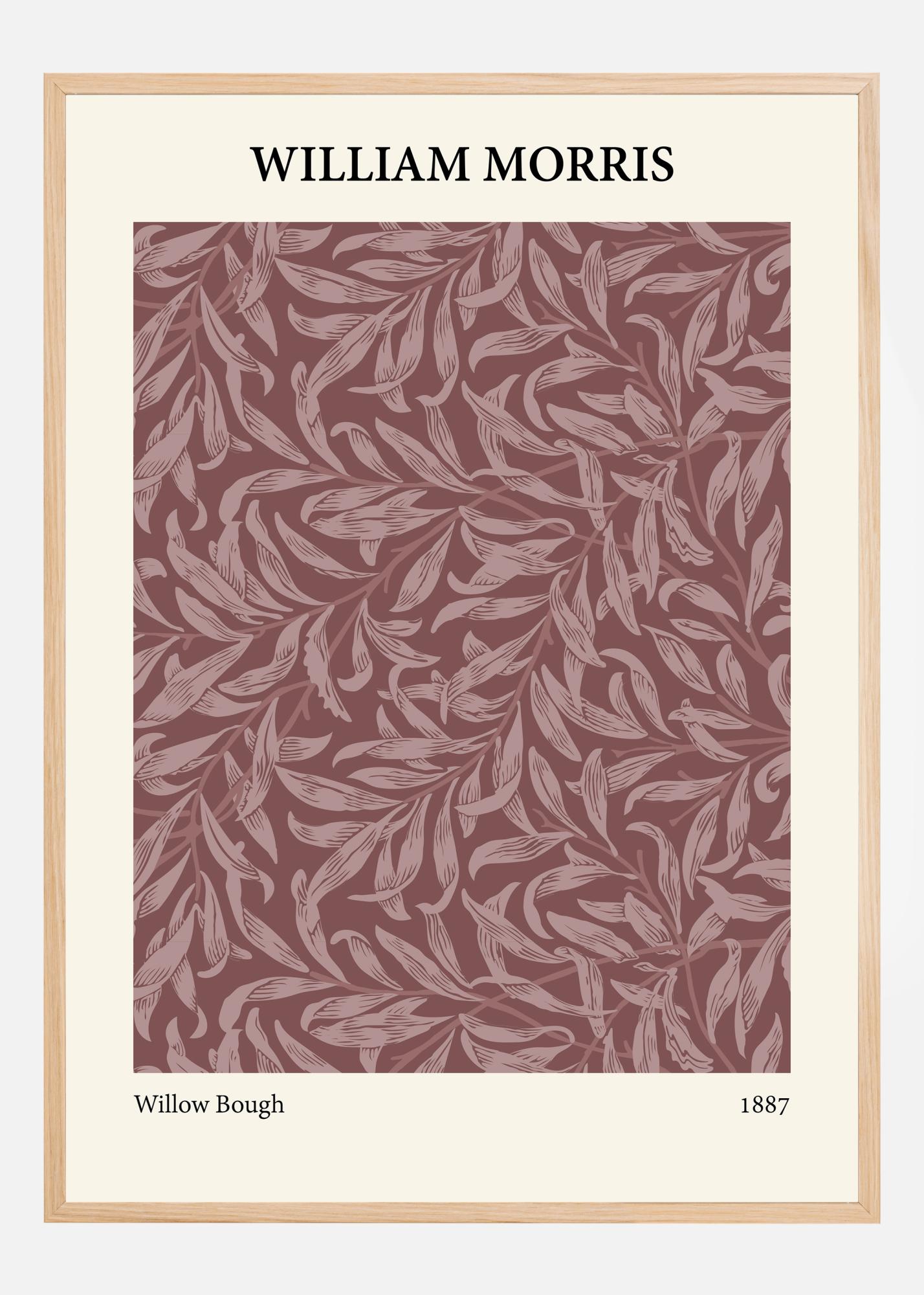 Tento výrazný plakát zvýrazňuje krásu "Willow Bough" Williama Morrise z roku 1887, který je zde prezentován v teplých a bohatých červeno-hnědých tónech připomínajících podzimní listy nebo skořici. Tančící vrbové listy na hlubokém pozadí přinášejí pocit pohybu i hloubky, což z tohoto dělá jeden z nejpozoruhodnějších Morrisových vzorů.