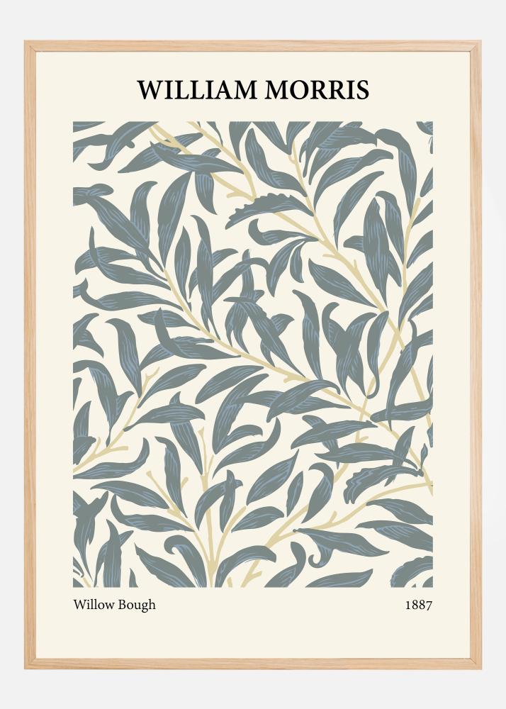 Tento umělecký plakát vzdává hold Williamu Morrisovi a jeho nadčasovému vzoru "Willow Bough" z roku 1887. Živá a dynamická kompozice vrbových listů na krémovém pozadí je klasickým zobrazením Morrisovy lásky k přírodě a jeho dovednosti při vytváření detailních textilních vzorů. Klidná a chladná barevná paleta modré a zelené vytváří pocit klidu a ticha, což činí tento design milovanou klasikou.