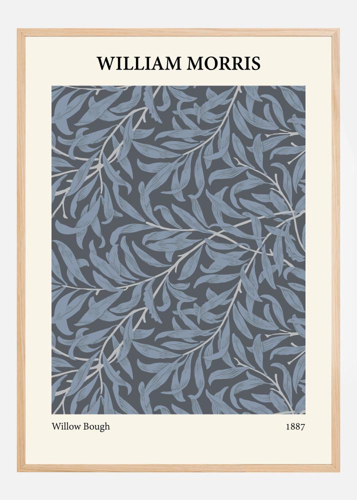 Tento plakát je krásným ztvárněním designu Williama Morrise "Willow Bough" z roku 1887, který zachycuje ladné tvary vrbových listů v sofistikované paletě modrošedých odstínů. Tento vzor je vynikajícím příkladem Morrisovy schopnosti kombinovat estetiku s přírodními motivy, což vytváří klidný a přívětivý dojem, který se hodí do mnoha různých stylů interiéru.