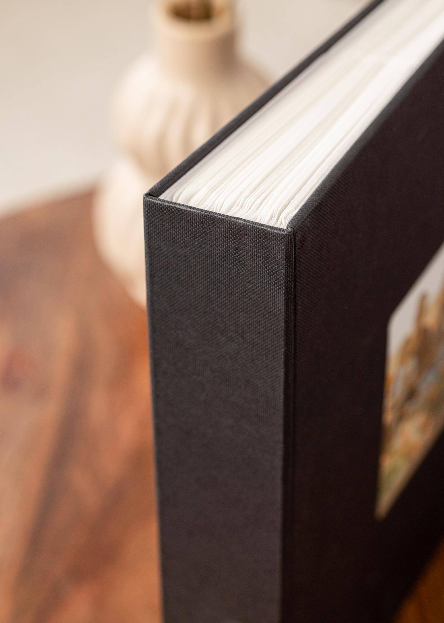 Desky alba jsou v klasické černé barvě, která dodává nadčasový a sofistikovaný pocit. Bílé stránky uvnitř alba vytvářejí krásný kontrast a zvýrazňují vaše obrázky tím nejlepším způsobem. Orientace obrázků v albu je jak na šířku, tak na výšku, což vám poskytuje flexibilitu k uspořádání vašich fotografií přesně podle vašich představ.