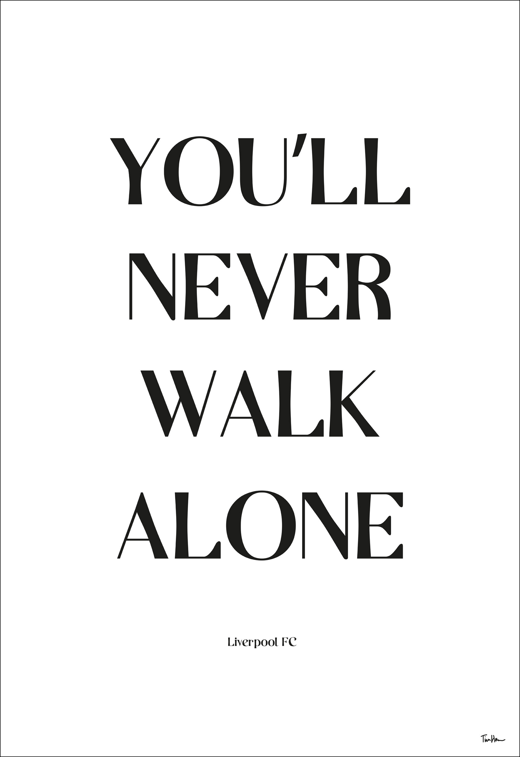 Přemýšlivý plakát, který obsahuje důležitý citát o životě. You'll Never Walk Alone z Liverpool FC je dokonalým doplňkem domova pro všechny fotbalové fanoušky. Je to však také skvělý motivační citát sám o sobě pro ty, kteří potřebují pomocnou ruku.