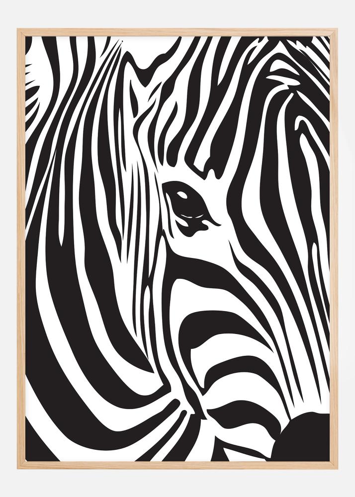 Grafický plakát s detailním záběrem na zebru. Plakát se skvěle hodí k zavěšení jako součást zdi s divokými zvířaty, ať už ve formě ilustrací nebo fotografií, což se stane poutačem v místnosti. Elegantní černobílý grafický motiv způsobuje, že plakát je stejně dobrý ve vašem domově jako ve veřejném prostředí. Kombinujte tisk s černým rámečkem s úzkým profilem, abyste co nejlépe zdůraznili zebří vzor.