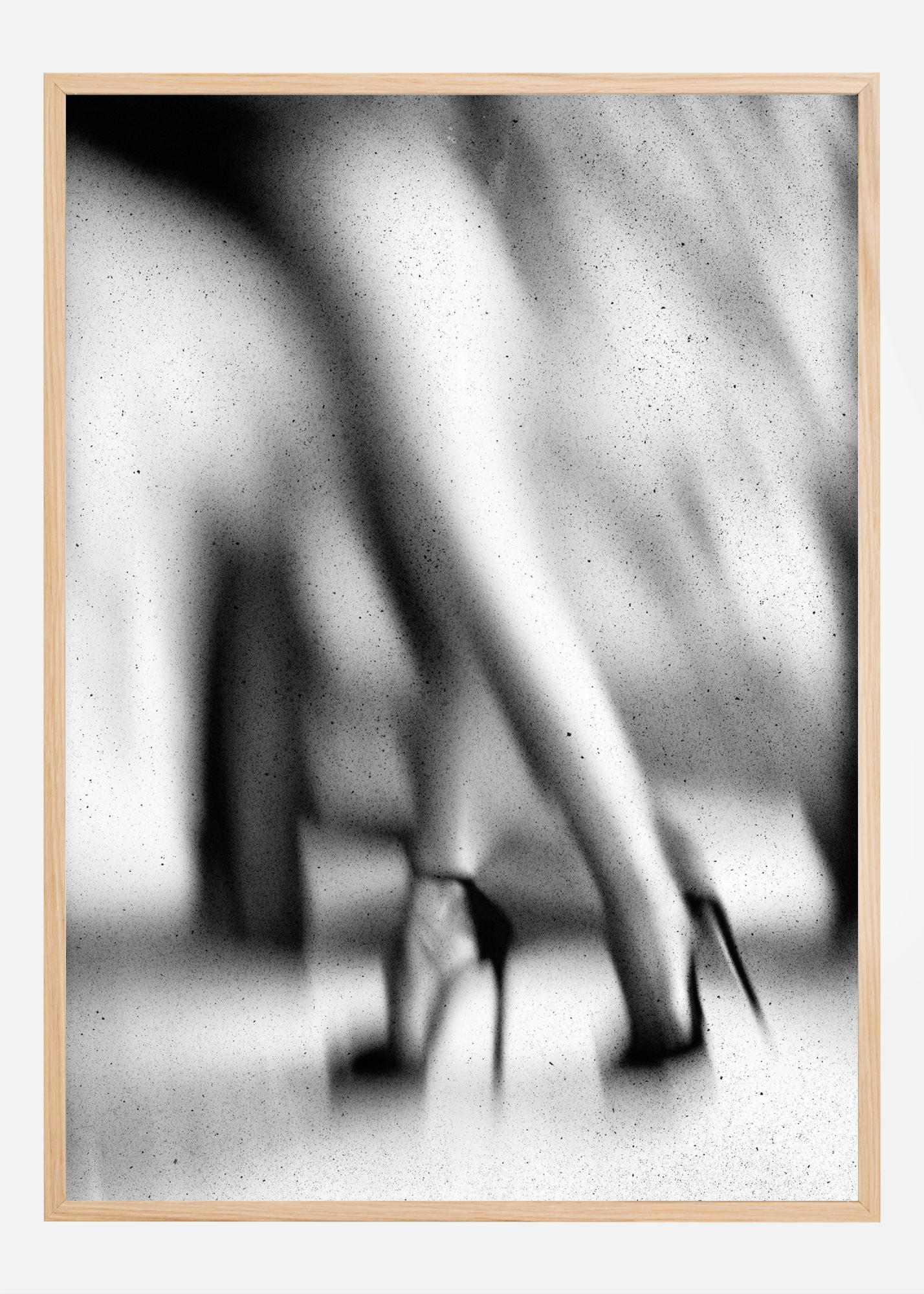 Tento umělecký plakát si hraje s rozostřením a kontrastem, aby vytvořil pocit pohybu a abstrakce. Zobrazuje pár nohou v lodičkách v atmosféře téměř rozmazaného pohybu, což dodává dílu éterický a dynamický pocit. Monochromatická barevná škála plakátu vyvolává pocit nadčasovosti a modernosti.