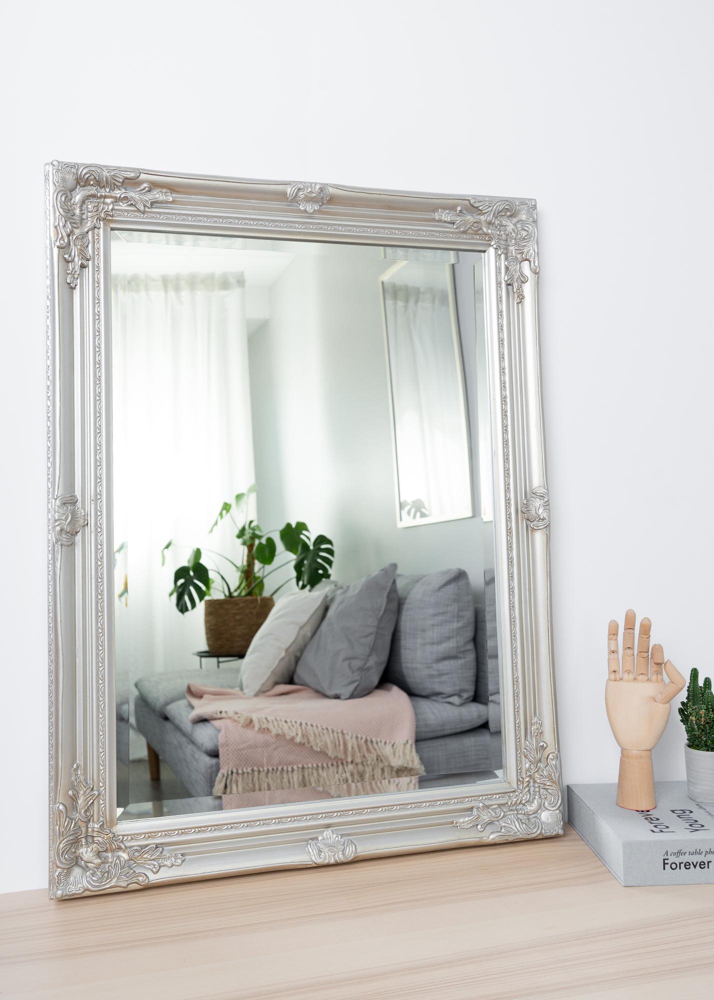 Zrcadlo Antique Silver je nástěnné zrcadlo s tradičním formátem a tvarem. Má rám ze dřeva s krásně klasicky navrženou dekorací, která byla odlita do sádry a poté aplikována na rám. Tento rám dělá ze zrcadla krásný ozdobný prvek, který přitáhne pozornost.