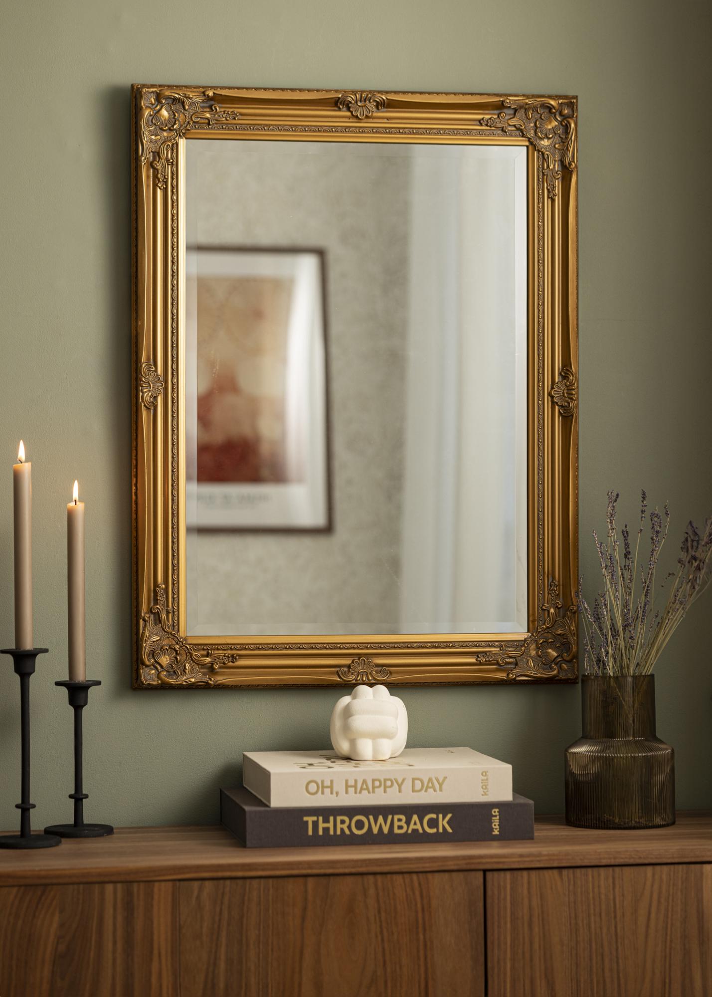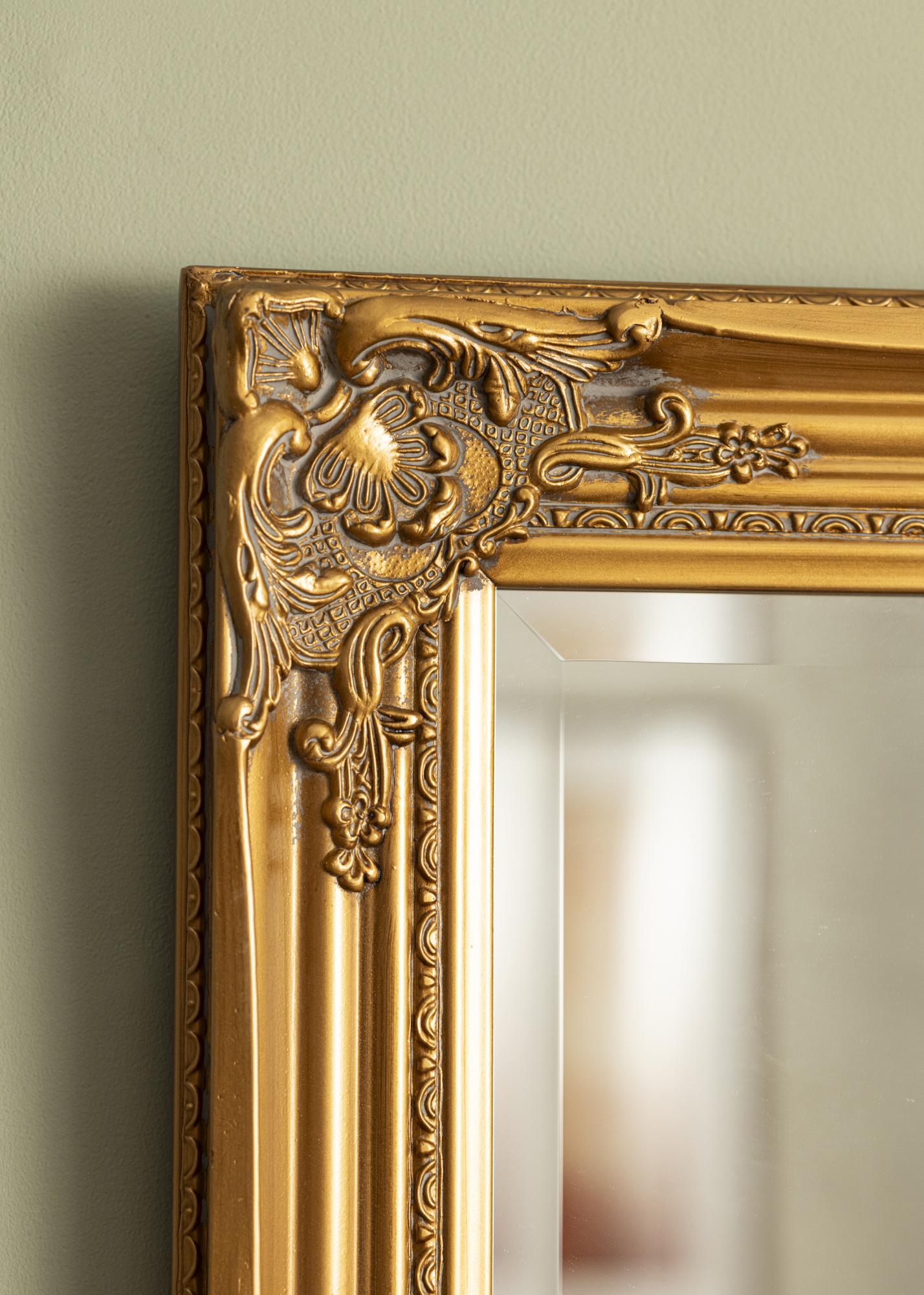 Zrcadlo Antique Zlatá je nástěnné zrcadlo s tradičním formátem a tvarem. Má rám ze dřeva s krásně klasicky tvarovanou ozdobou, která byla odlitá ze sádry a poté aplikována na rám. Tento rám dělá zrcadlo krásným dekoračním předmětem, který přitáhne pozornost.
