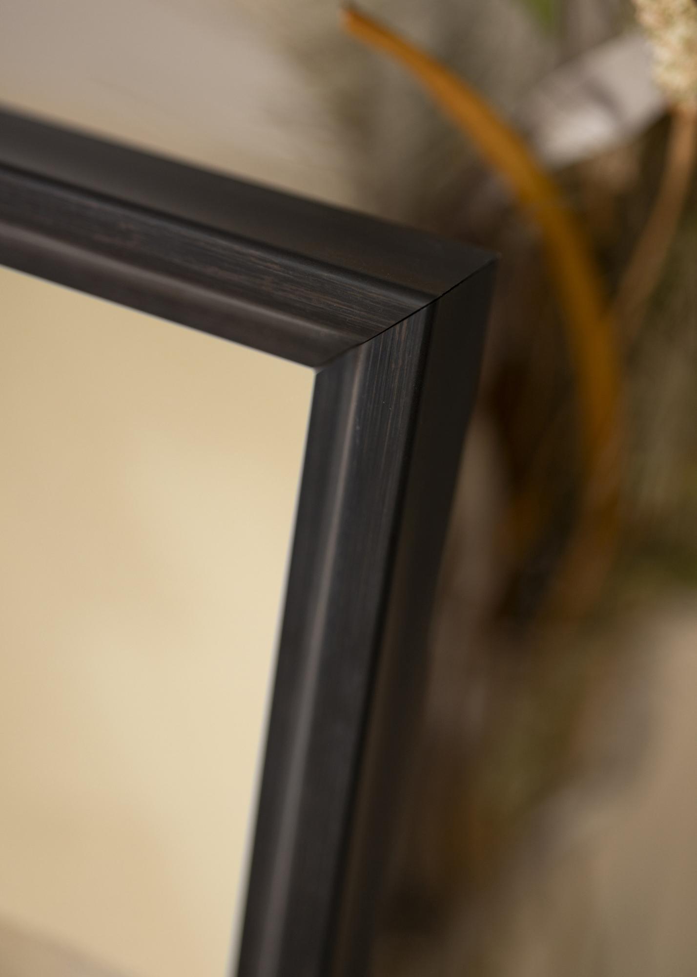 Tradiční rám zrcadla v tmavě černohnědé barvě, která je blíže k černé než k hnědé. Výborná volba, když hledáte zrcadlo na míru v tmavém odstínu, kde je viditelná struktura dřeva, což dává zrcadlu živější vzhled ve srovnání s úplně černým profilem.