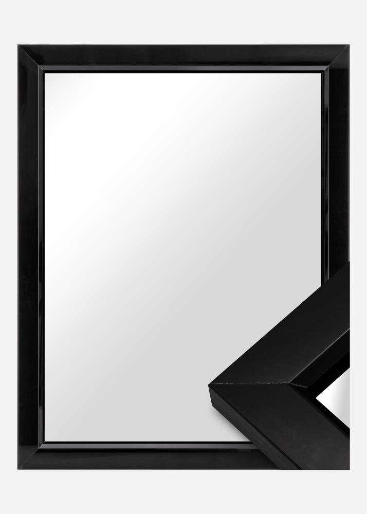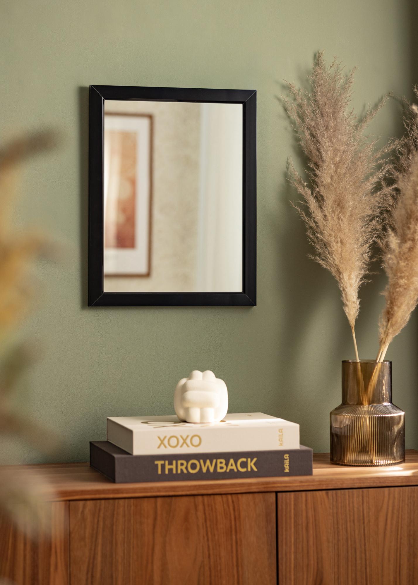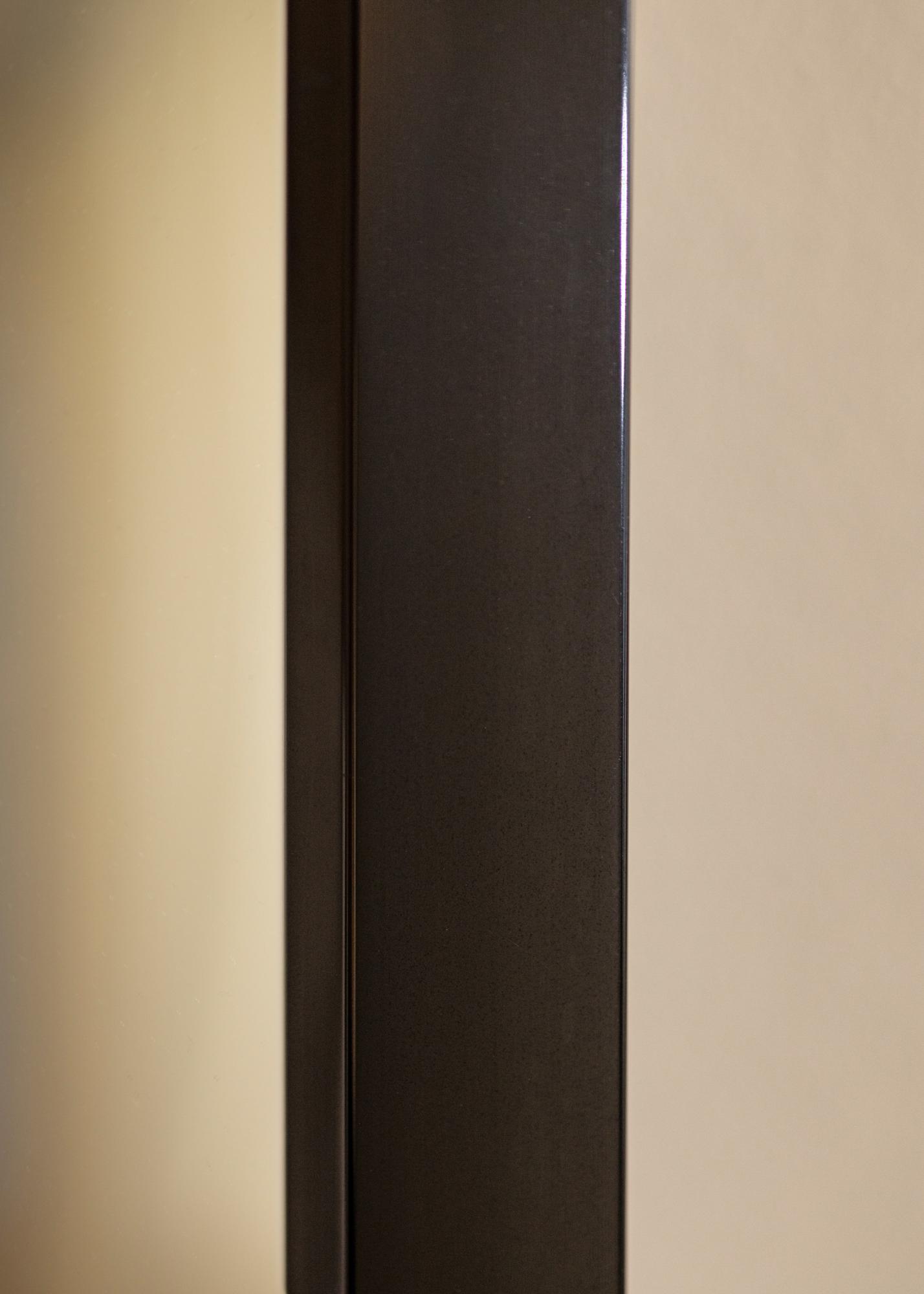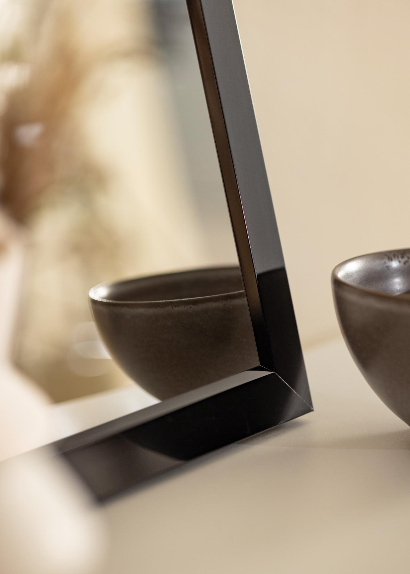 Černé elegantní vysokolesklé zrcadlo, s rámem vyrobeným z hliníku, který má vnitřní zkosení. Grafické zrcadlo s mužským pocitem může poskytnout vzrušující kontrast k měkčí interiéru, ale lesklý lak také umožňuje, aby se zrcadlo dobře hodilo do moderního industriálního interiéru. Zavěste zrcadlo spolu s grafickými plakáty nebo obrazy s černými rámy. Umístěním naproti oknu vytvoříte v místnosti prostor.