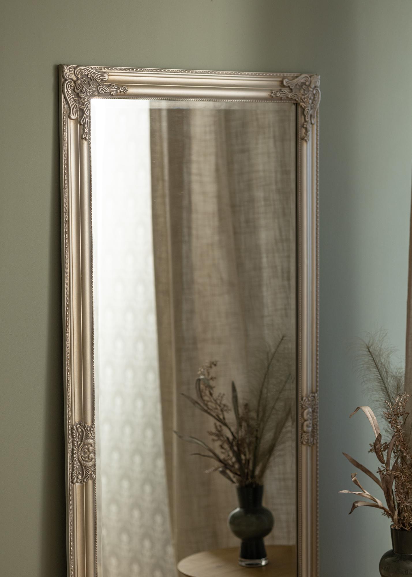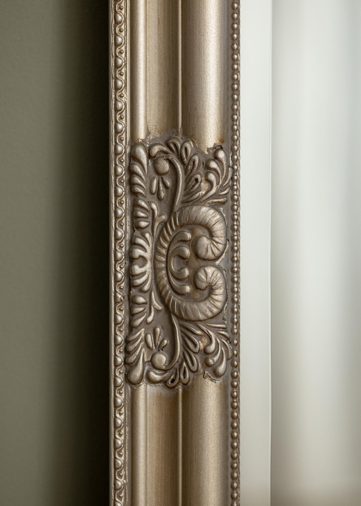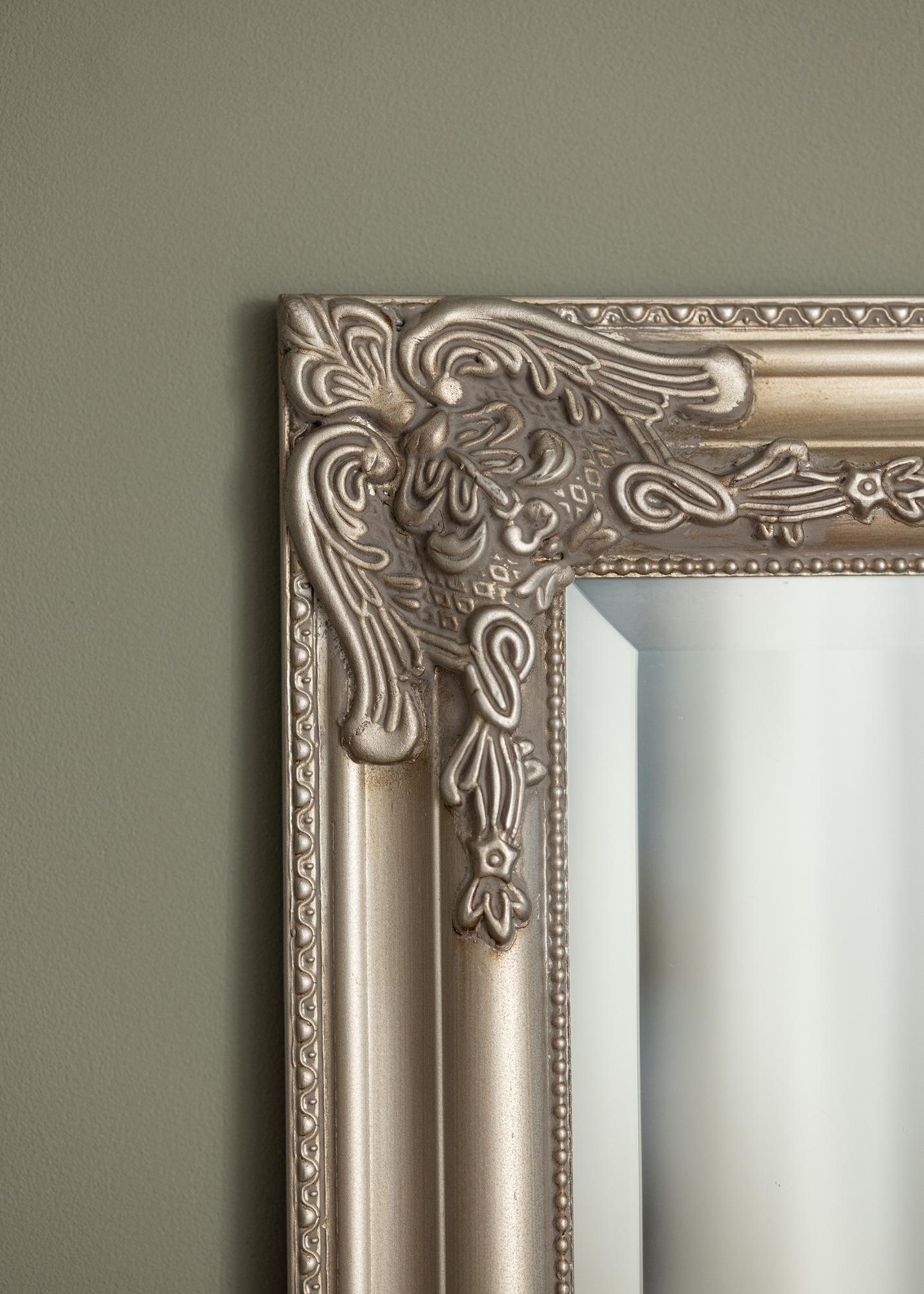 Bohatě zdobený rám je plný jemných detailů a vzorů, což dává zrcadlu vintage kouzlo, kterému je těžké odolat. Stříbrný rám posiluje lesklý povrch zrcadla a přispívá k luxusní atmosféře v místnosti. Toto zrcadlo je ideálním společníkem pro každého, kdo oceňuje klasickou eleganci a chce vytvořit rafinované a přívětivé prostředí.