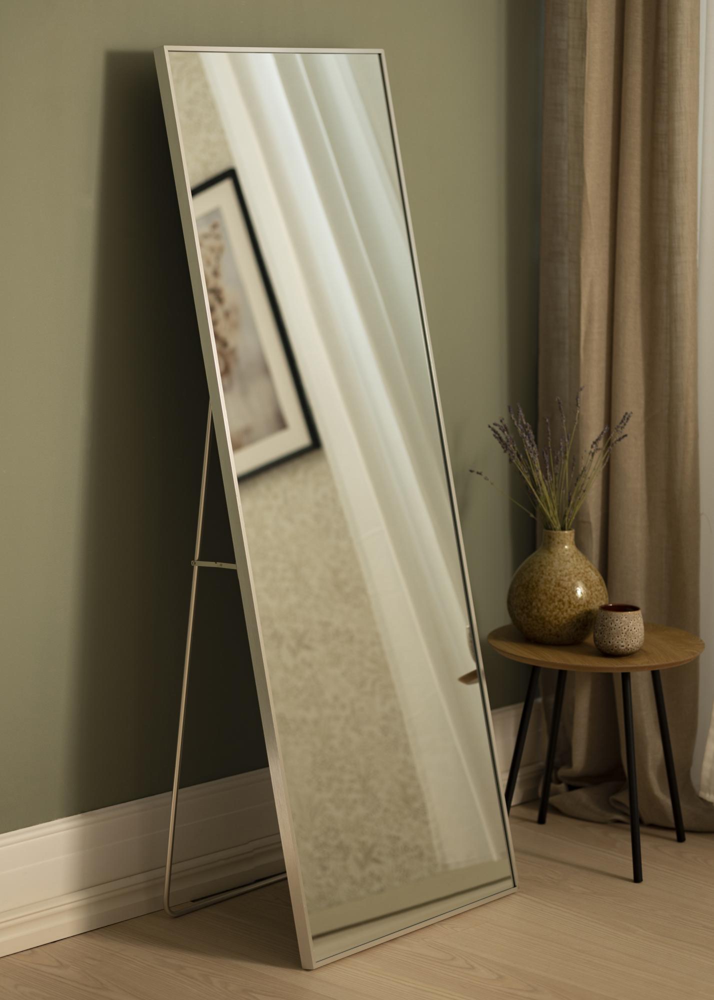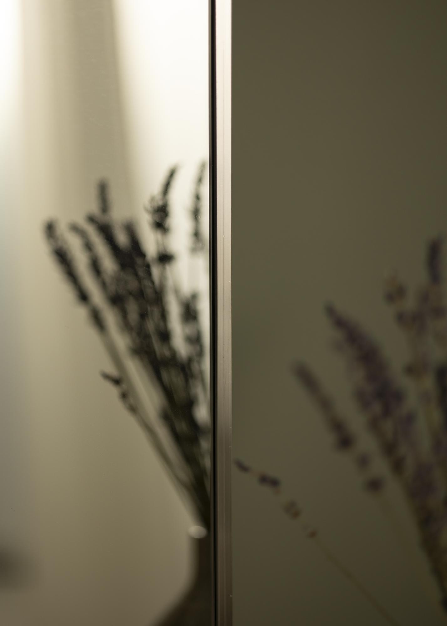 Toto zrcadlo je ozdobeno tenkým, stříbrným hliníkovým rámem, který přidává vašemu interiéru nádech sofistikovanosti. Obdélníkový tvar je jak nadčasový, tak moderní a hodí se do řady různých stylů interiéru. Minimalistický design zrcadla umožňuje, aby splývalo s místností, a zároveň vyniklo jako elegantní detail.