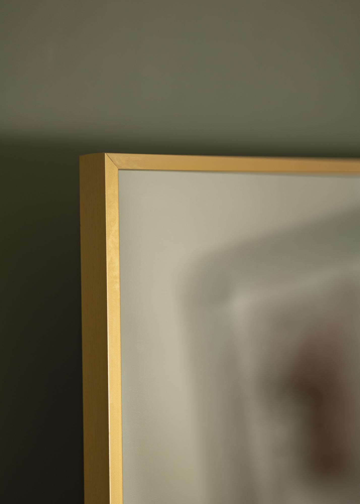 Toto zrcadlo není jen praktické, ale také dekorativní prvek, který povznese váš interiér na novou úroveň. Tenký, zlatavý hliníkový rám obklopuje zrcadlové sklo a dodává sofistikovaný dotek, který se hodí jak do moderního, tak tradičního prostředí.