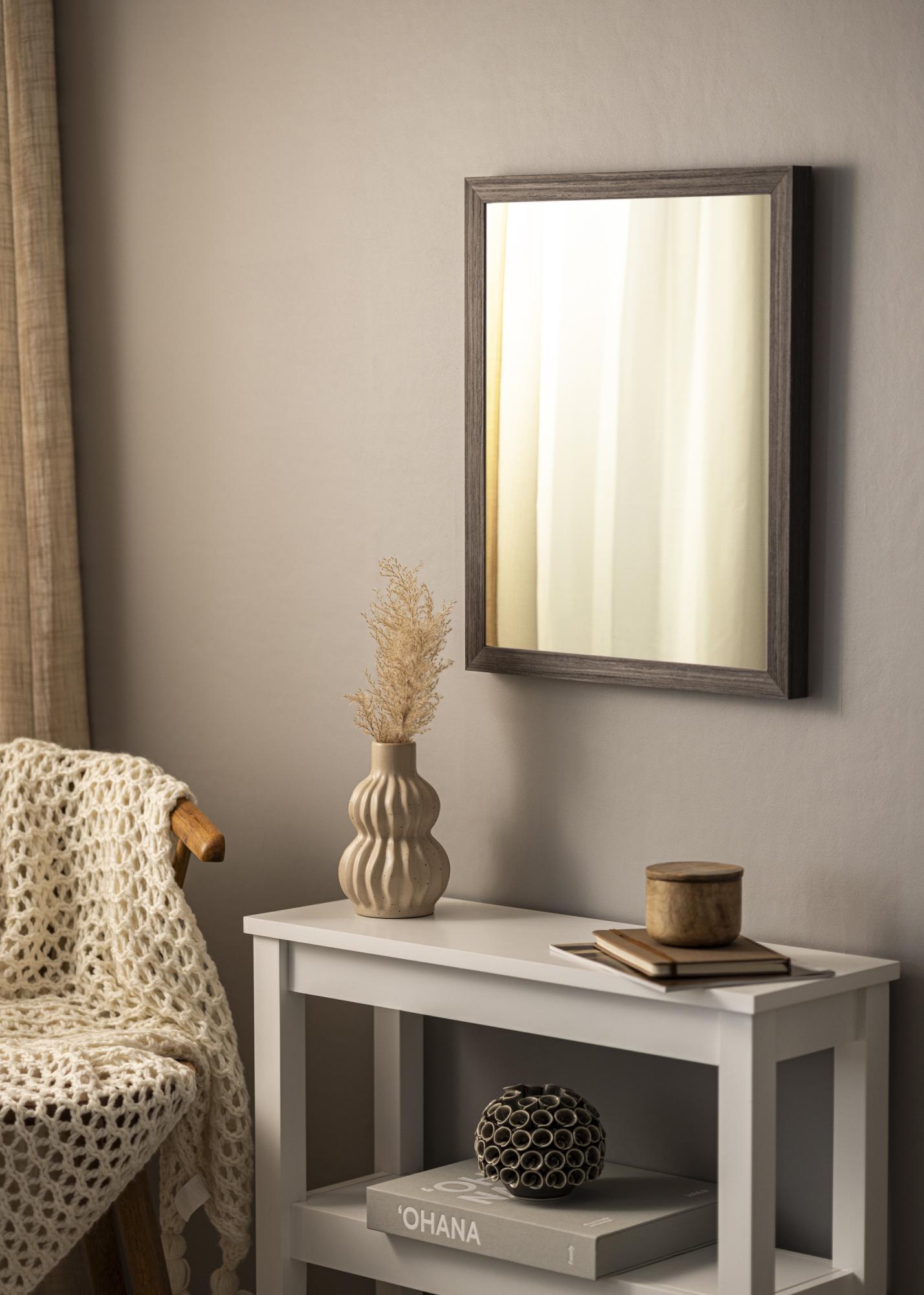 Zrcadlo Cotswold Šedé je zrcadlo na míru, které vyrábíme pro splnění vašich konkrétních potřeb. Se svou 28 mm širokou rámovou lištou a hloubkou 33 mm nabízí toto zrcadlo dokonalou rovnováhu mezi funkčností a estetikou. Rám je vyroben z borovice a má tmavou dřevěnou povrchovou úpravu s výraznou strukturou vláken, což posiluje jeho přirozený vzhled a dodává místnosti teplý a přívětivý pocit.