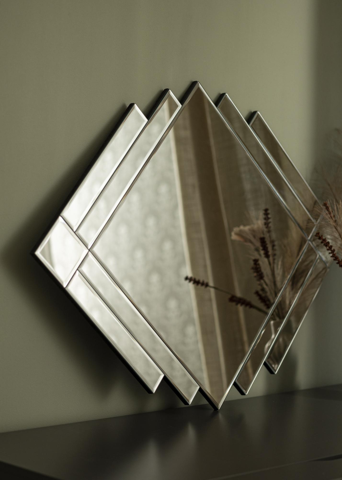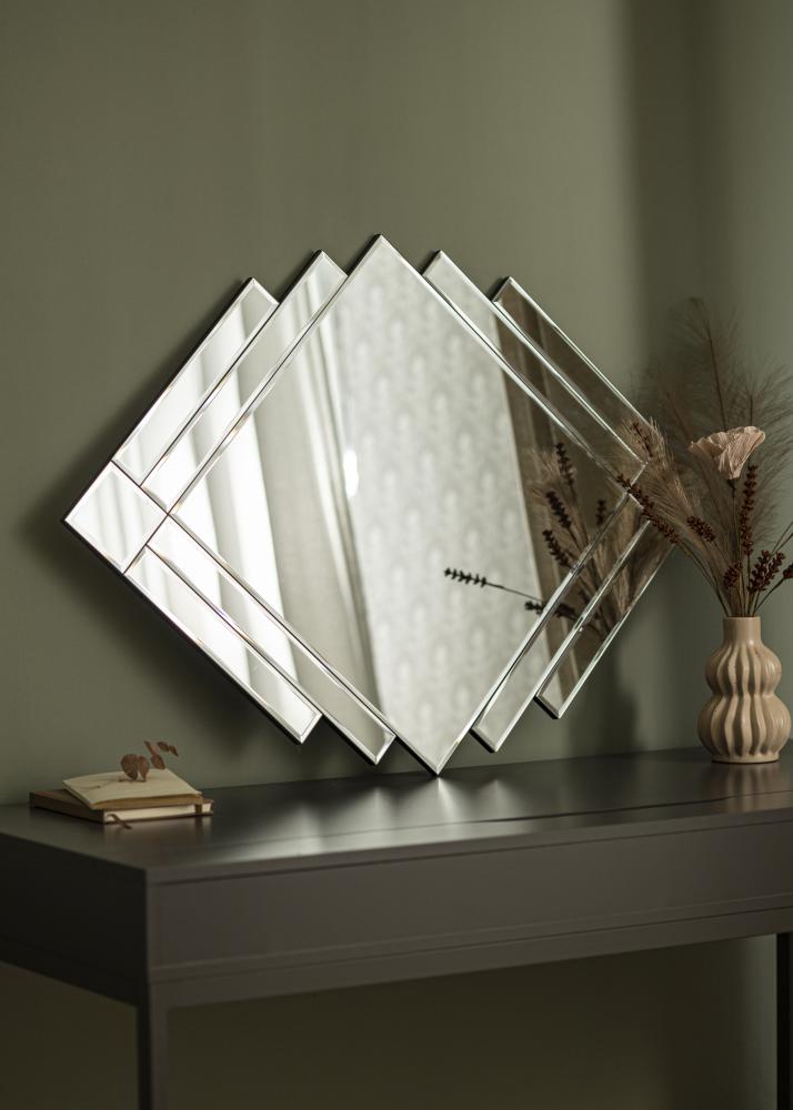Objevte zrcadlo, které narušuje normy a dodává vašemu domovu umělecký nádech. S jeho mnohostrannými zrcadlovými sekcemi nabízí toto zrcadlo neobvyklý a poutavý tvar, který se jistě stane tématem konverzace. Jeho rozměr 71x99 cm z něj dělá velkolepý ústřední bod, ať už je umístěno kdekoli.
