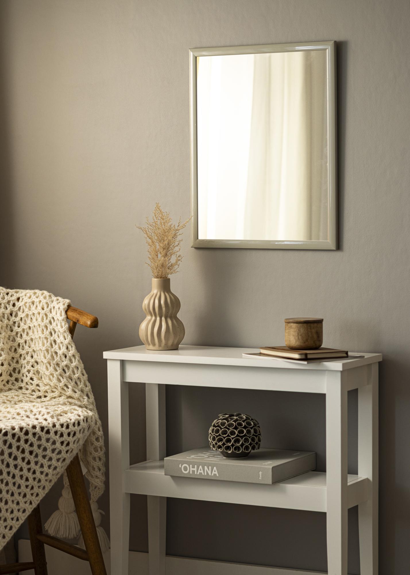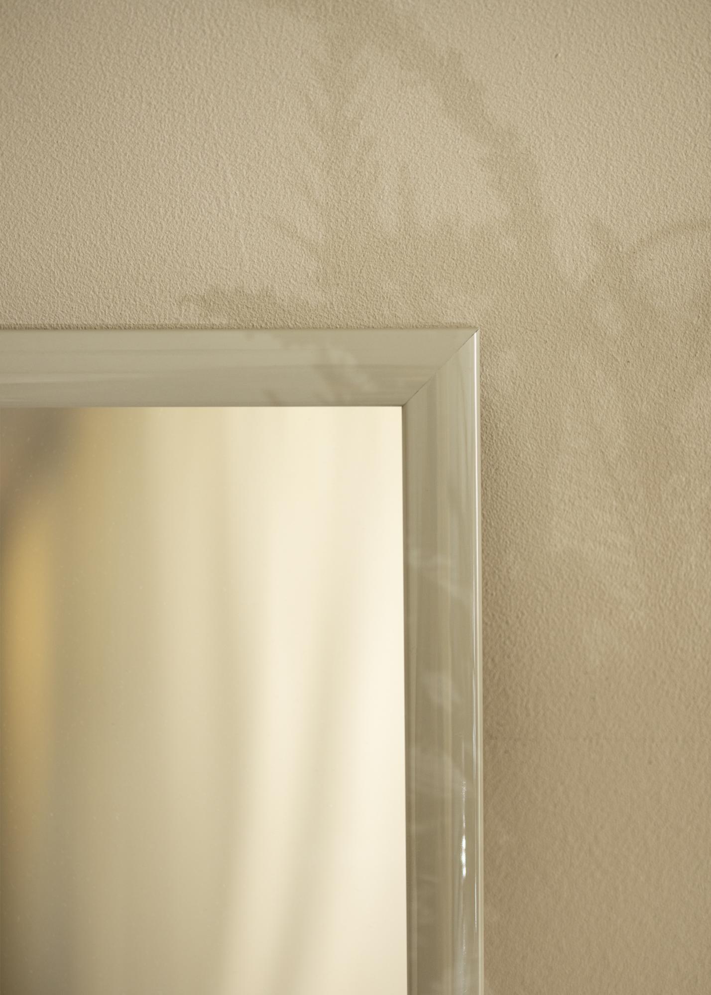 Toto zrcadlo je vyrobeno z Ayodřeva, což mu dává odolnou a kvalitní konstrukci. Světle šedá barva s vysoce lesklým povrchem dodává zrcadlu sofistikovaný a reflexní povrch. Hladká lakování zdůrazňuje jemné odstíny barvy a vytváří živý výraz, který se mění v závislosti na úhlu světla.