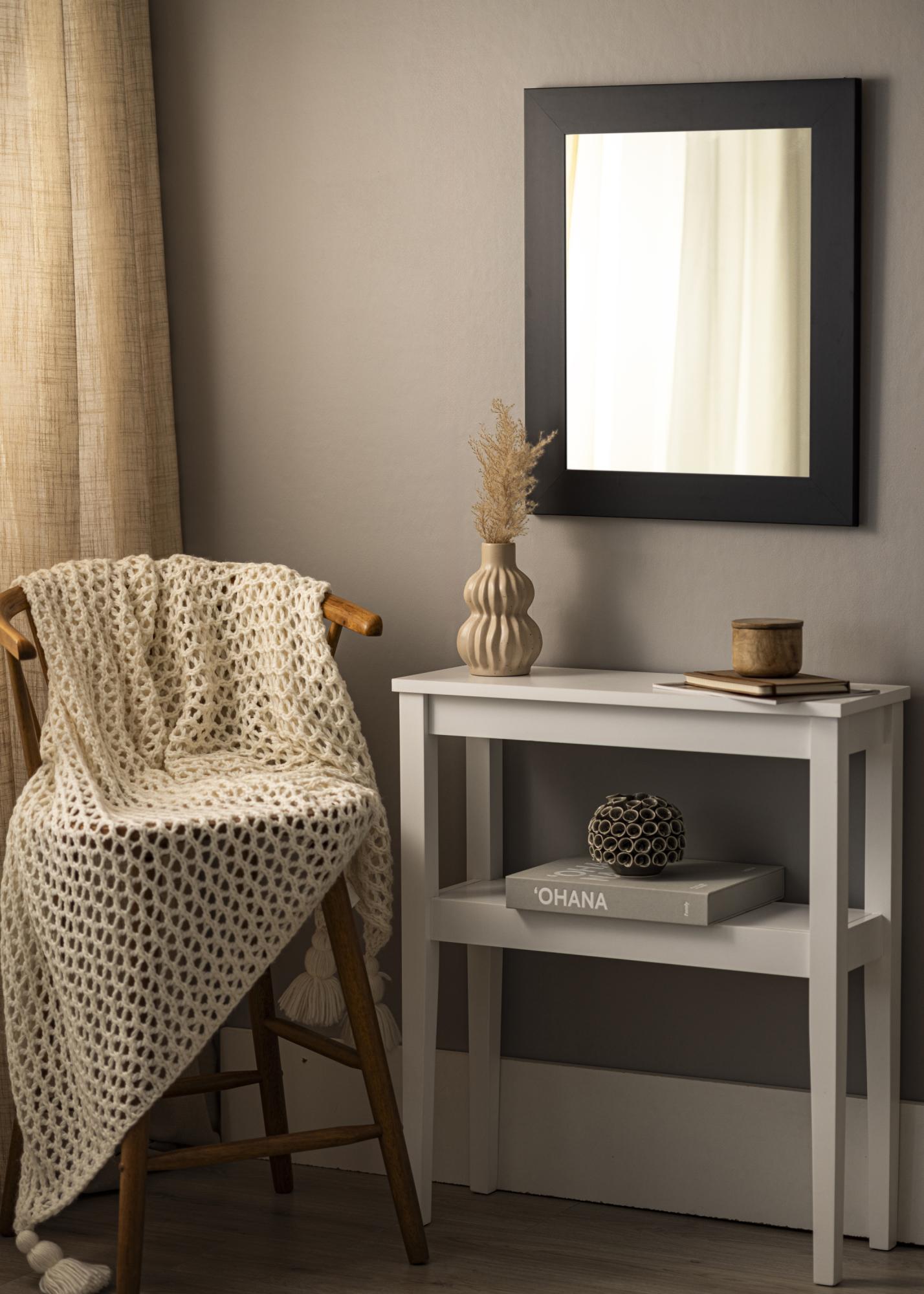 Toto zrcadlo má elegantní černou barvu, která poskytuje moderní a elegantní dojem. 69 mm široký rám z matného černého dřeva Ajous přispívá k sofistikovanému vzhledu zrcadla a činí z něj výborný doplněk k jak klasickým, tak moderním interiérovým stylům. S hloubkou 22 mm má zrcadlo robustní konstrukci, která zajišťuje jeho trvanlivost a stabilitu.