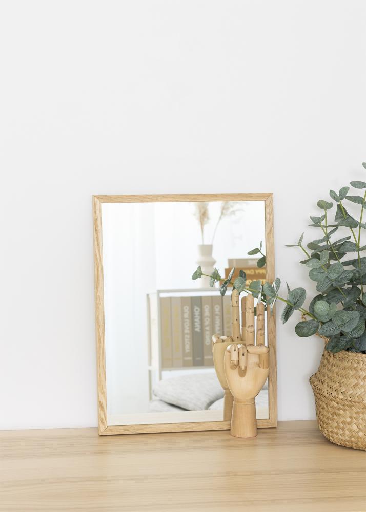 Toto je nástěnné zrcadlo s tenkým dřevěným rámem, které se skvěle hodí jak do moderních, tak do více bohémských domovů. Zrcadlo je ukázkou skandinávského designu v jeho nejlepší podobě, s nebarevným zrcadlovým sklem a světlým dřevěným rámem s přímým profilem, které společně poskytují svěží a jasný vzhled.
