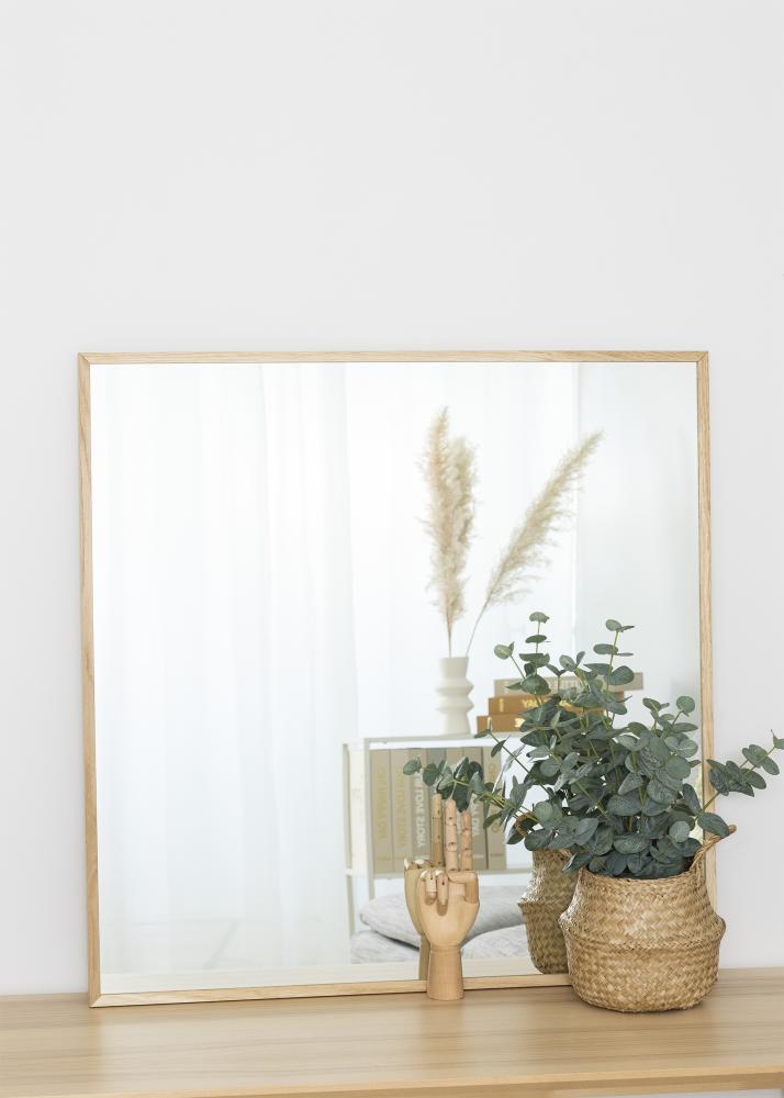 Toto je nástěnné zrcadlo s tenkým dřevěným rámem, které se skvěle hodí jak do moderních, tak do více bohémských domovů. Zrcadlo je ukázkou skandinávského designu v jeho nejlepší podobě, s nebarveným zrcadlovým sklem a světlým dřevěným rámem s rovnými liniemi, které společně vytvářejí světlý a svěží vzhled.