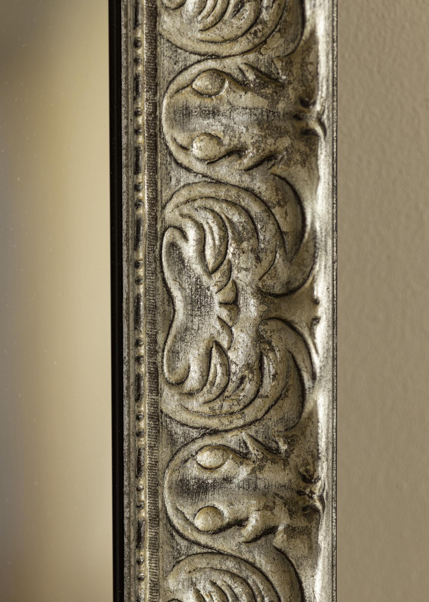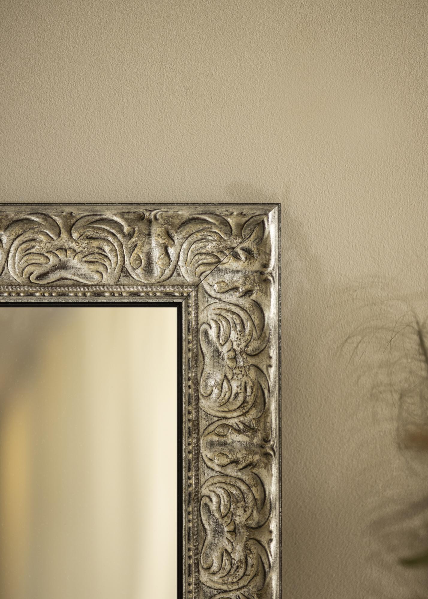 Zrcadlo Durham Silver je zrcadlo na míru, které vyrábíme, aby vyhovovalo vašim potřebám. Se svým stříbrným rámem a antickým povrchem je stylovým prvkem v jakékoli místnosti. Ozdobná reliéfní struktura na rámu dodává zrcadlu jedinečný charakter a přispívá k rustikálnímu, ale přesto elegantnímu vzhledu.