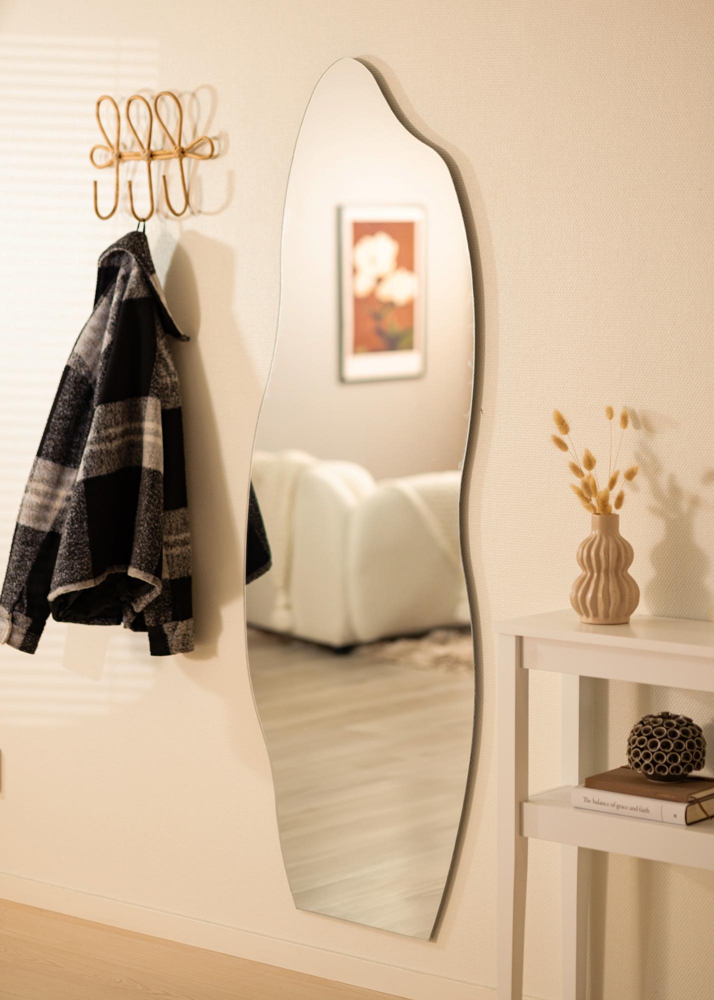 Zrcadlo má unikátní, vlnitou formu, která je široká u základny a elegantně se stáčí směrem nahoru. Tento neobvyklý tvar z něj činí umělecké dílo samo o sobě a dodává vaší stěně dynamický prvek. Je navrženo tak, aby bylo centrálním bodem ve vašem domově, ať už je umístěno v hale, ložnici nebo obývacím pokoji.