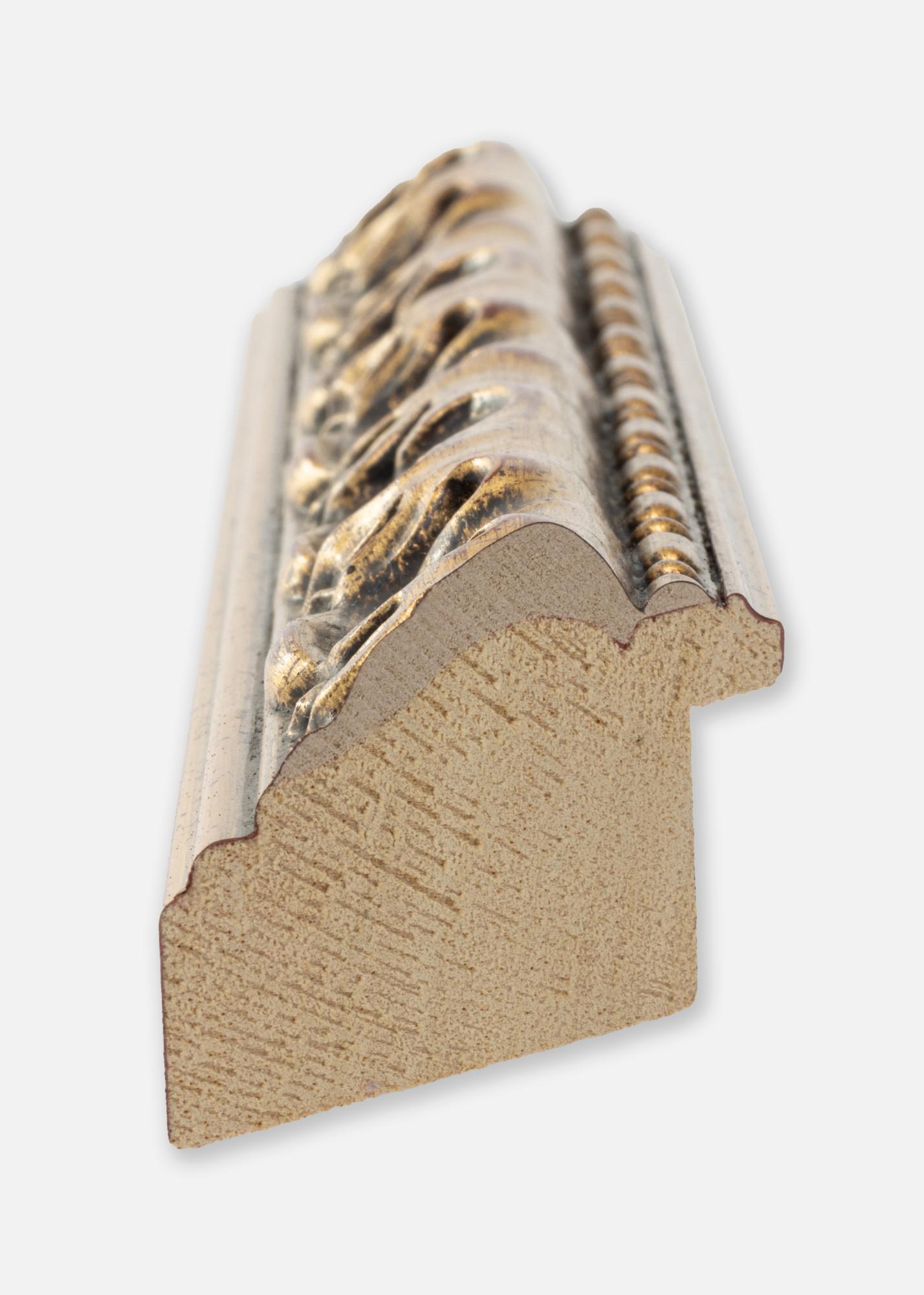 Zrcadlo Freyja Gold je elegantní a stylové zrcadlo, které vyrábíme s velkou péčí. Toto zrcadlo je ideální pro ty, kteří hledají unikátní interiérový prvek, který lze přizpůsobit vašim specifickým rozměrům. Se svým zlato zbarveným rámem a propracovanými ornamenty se stane poutavým prvkem v jakékoli místnosti.