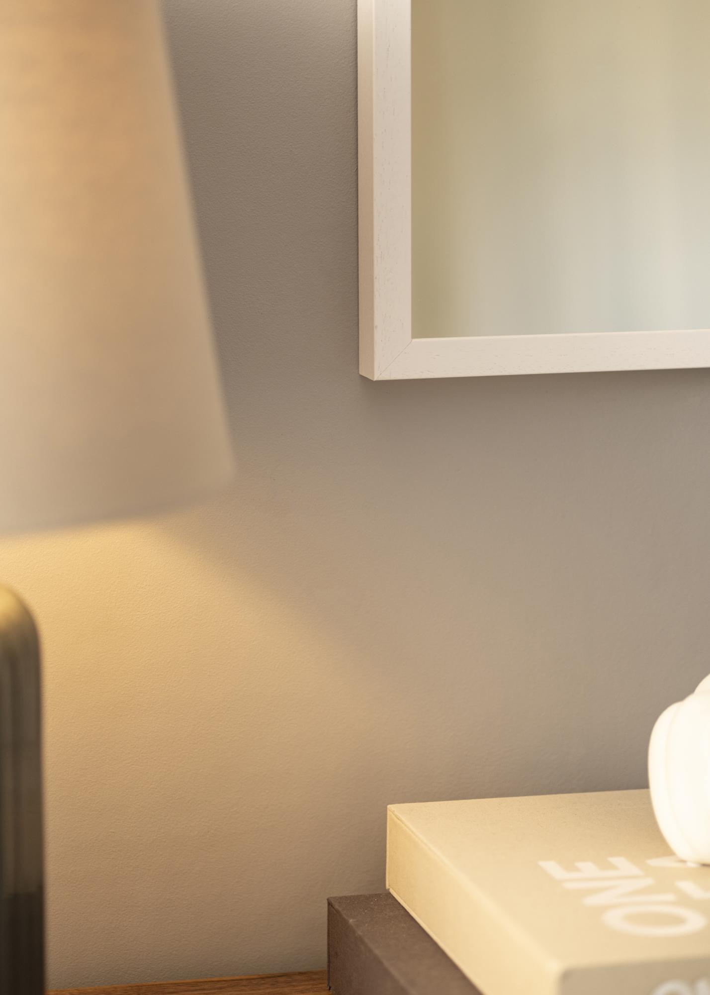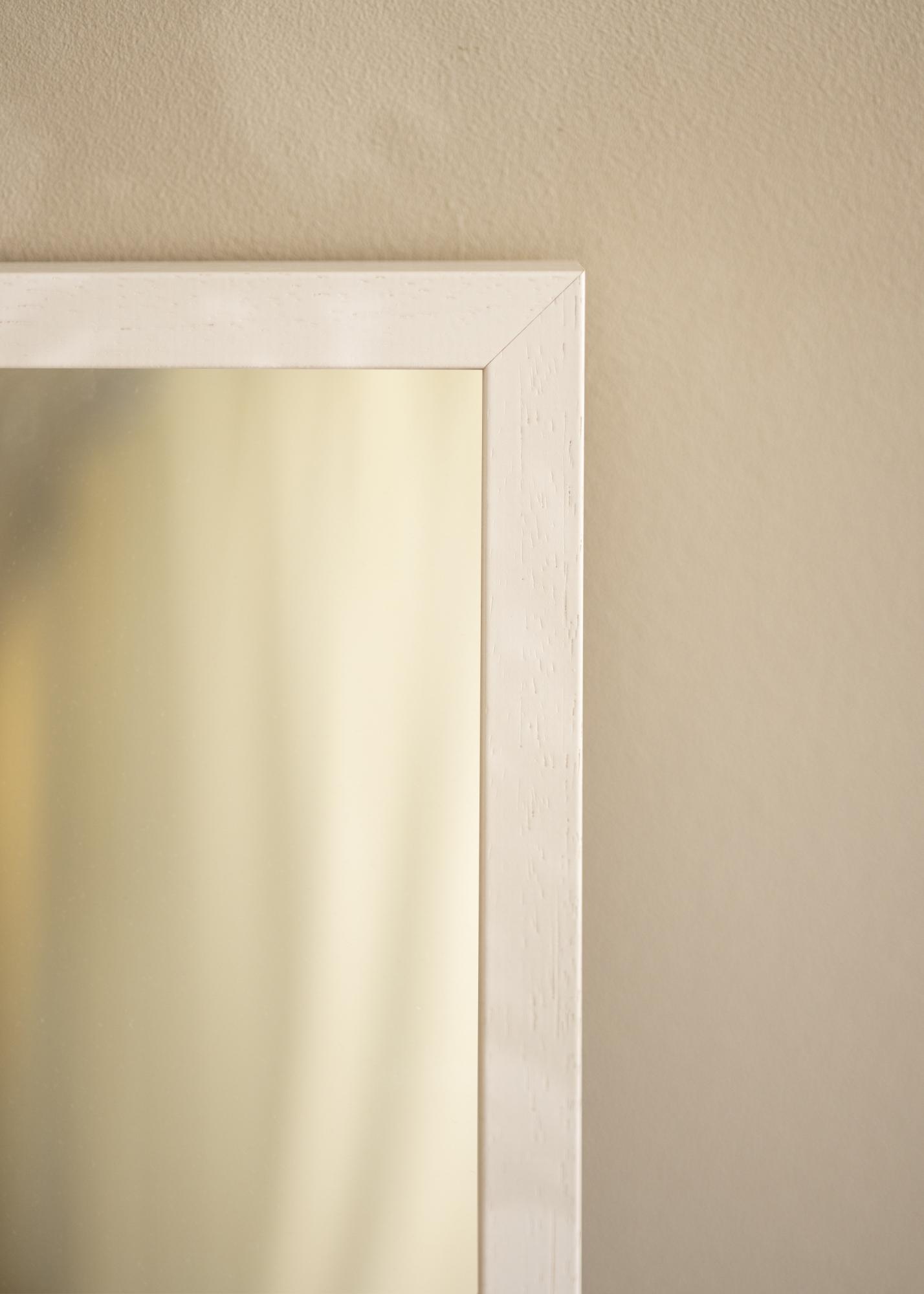 Gävle Bílá má pevný dřevěný rám s hloubkou celých 31 mm, což způsobuje, že zrcadlo je trochu od stěny vzdálené.
