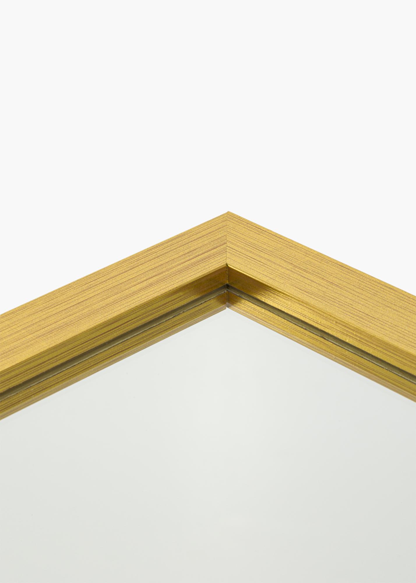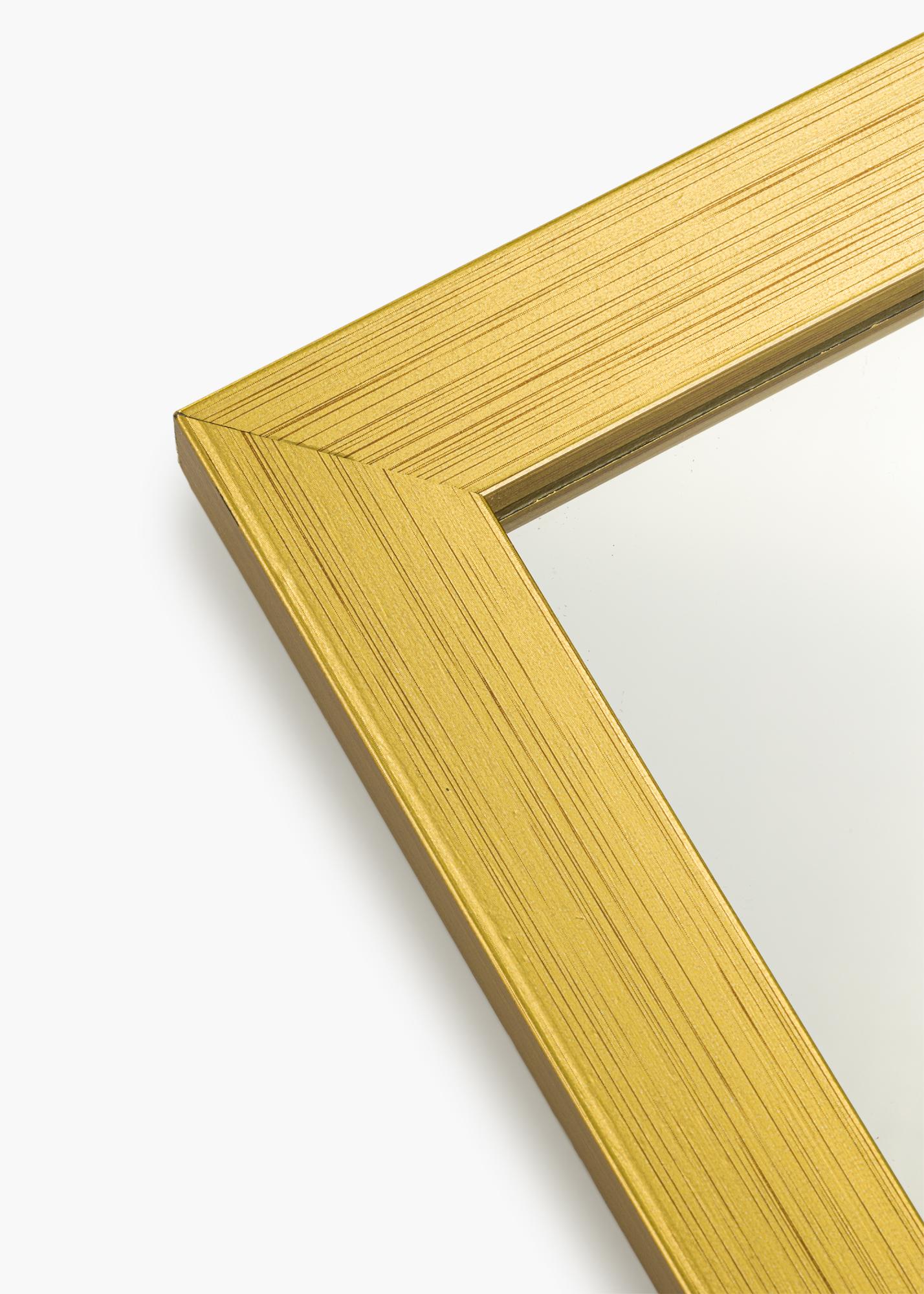 Gold Wood - když jednoduchost potká okázalost! Toto je nástěnné zrcadlo s 22 mm širokým rámem vyrobeným z ayodřeva. Rám má klasický rovný profil, který dodává celému zrcadlu minimalistický pocit, zatímco namalovaná zlatá barva přidává nádech elegance.