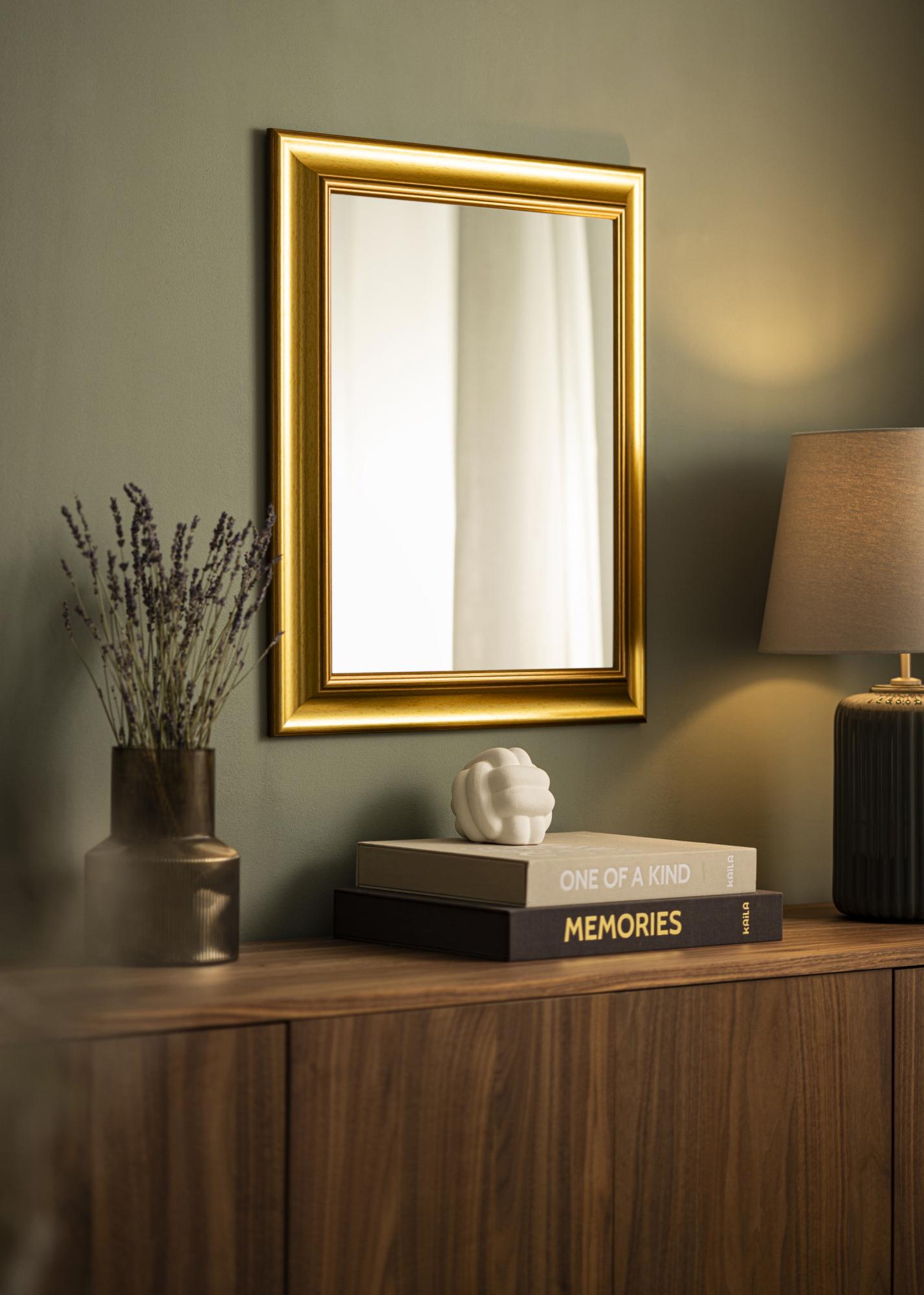 Zrcadlo Hampshire Zlaté je zrcadlo na míru, které vyrábíme, aby vyhovovalo vašim potřebám. S elegantní zlatou barvou a rámem širokým 64 mm se stává stylovým prvkem v jakékoli místnosti. Hloubka zrcadla 31 mm mu dodává robustní pocit, zatímco splyne s vaším interiérem.