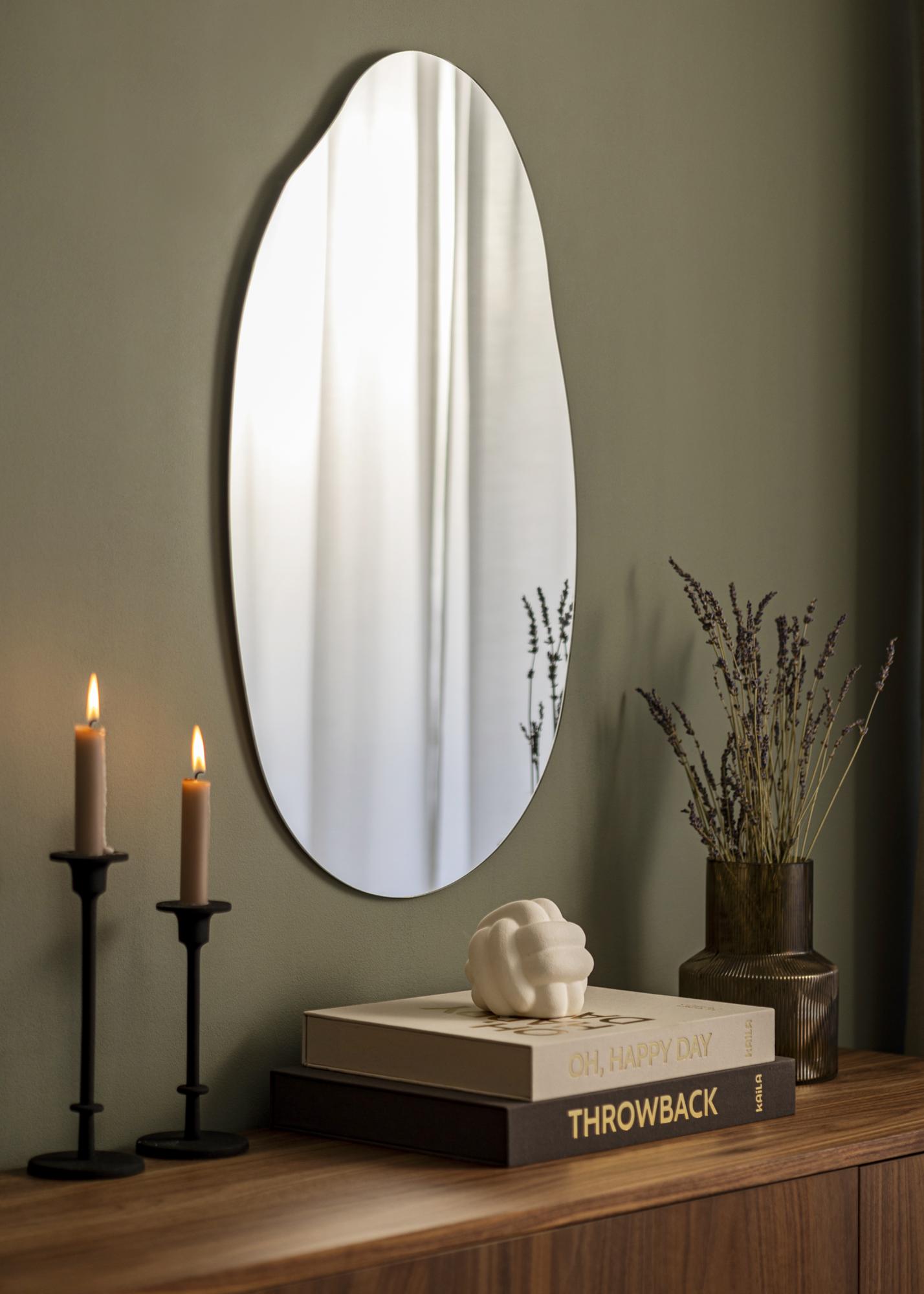 Objevte elegantní a moderní zrcadlo navržené tak, aby vašemu pokoji dodalo pocit prostoru a světla. Se svými velkorysými rozměry 45x75 cm toto zrcadlo dokonale zapadá jak do malých, tak i velkých prostorů. Jeho jedinečný tvar je podlouhle oválný a nahoře se jemně zužuje, čímž vytváří sofistikovaný a současný profil, který upoutá pozornost.