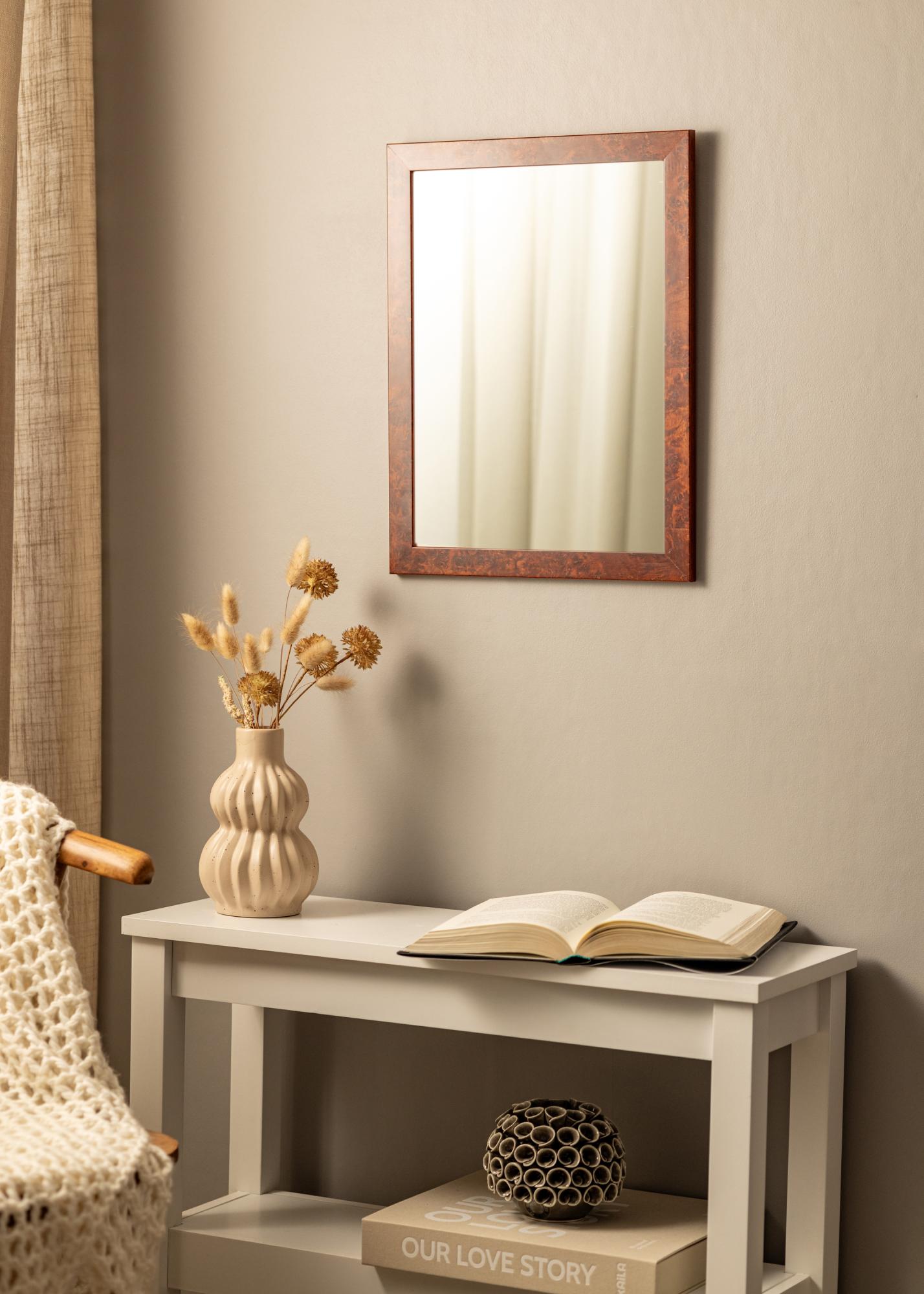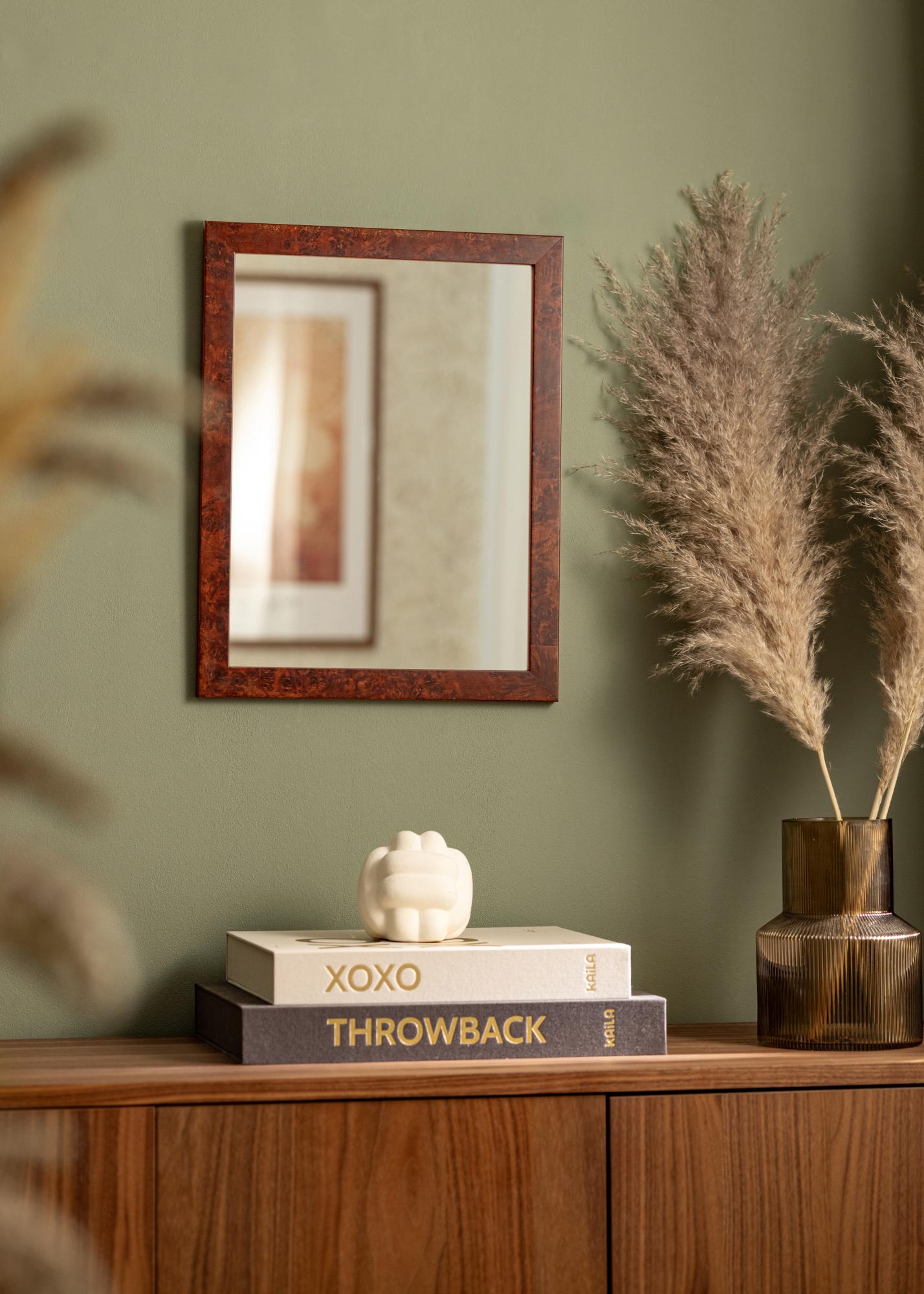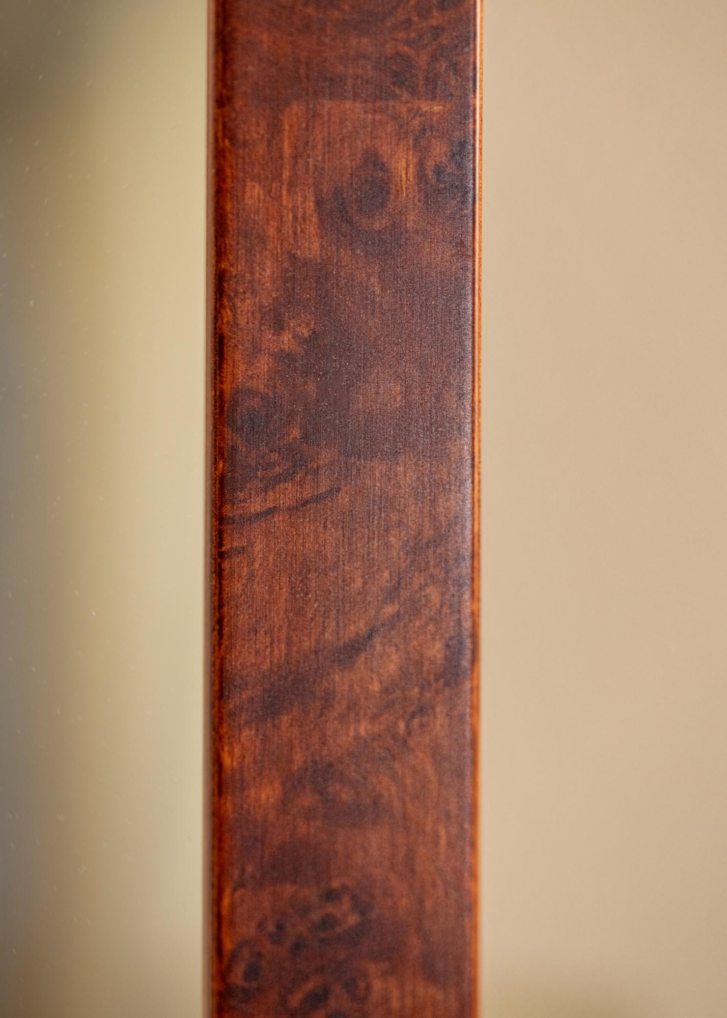 Elegantní dřevěný rám v tmavě hnědé barvě, který se skvěle hodí, když hledáte zrcadlo v klasickém stylu.